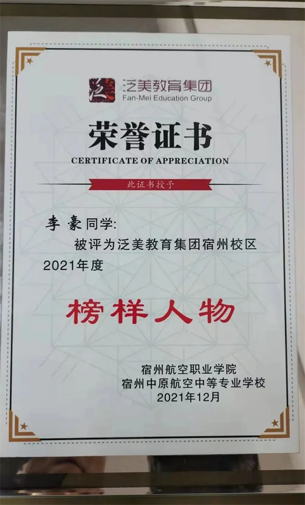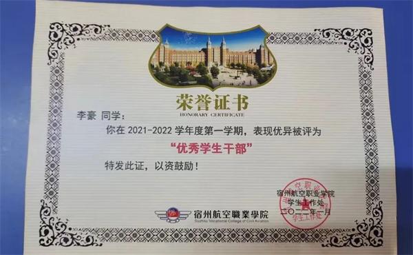 天道酬勤,李豪优秀的表现得到了学院以及老师的认可🧑🏼💼,被评为2021年度“榜样人物”、“军训优秀标兵”、“优秀中队长”等荣誉🐼。他胸怀理想不断超越自己🤸🏻♀️,在学习生涯中创造新的辉煌。