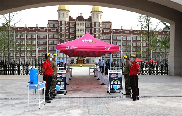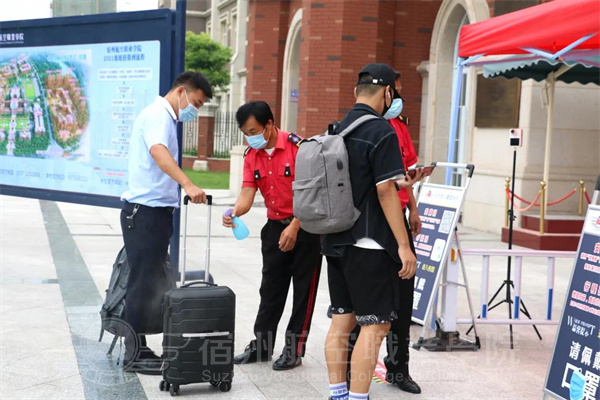 严控校园安全,为同学们的安全保驾护航。工作人员在校门口引导着萌新们进行行李消毒、测量体温、核实健康码👼🏽、检查核酸检测报告等🐳🧫,符合要求者方能进入校园。