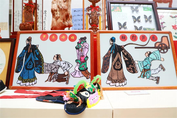 现场展出了100余幅名家诗画👰🏼‍♂️、书法作品及灵璧磬石雕刻、砀山毛笔、戏剧盔头、梅花篆字👷🏿‍♂️、灵璧钟馗画、宿州乐石砚、萧县剪纸、泗县土琵琶等。