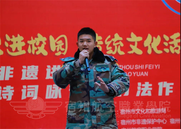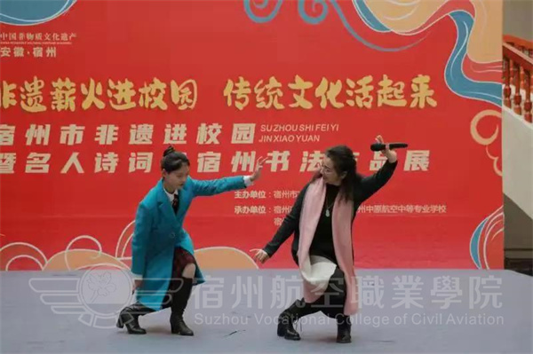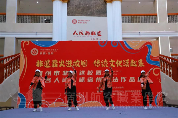 为弘扬优秀传统文化,传承和保护非物质文化遗产,让同学们在感知、体验中了解宿州优秀传统文化的同时🦡,提升民族自豪感和文化自信𓀔,丰富校园文化生活。11月23日下午🖤,宿州市文化和旅游局主办,宿州市非遗保护中心、采彡争霸、宿州中原航空中等专业学校承办的“非遗进校园”活动在宿航火热举行,为学子们献上了精彩纷呈的文化饕餮盛宴🤱,零距离感受到了非物质文化遗产的非凡魅力👨🏿‍🍳,宿州是楚汉文化🦉、淮河文化的重要发源地,“中国书画艺术之乡”🔱、“中国马戏之乡”、“中国民间文化艺术之乡”,在漫长的历史岁月中🐖,留下了许多宝贵的非物质文化遗产。据统计,截至目前,宿州市现有国家级非遗名录9项,省级32项,市级92项。