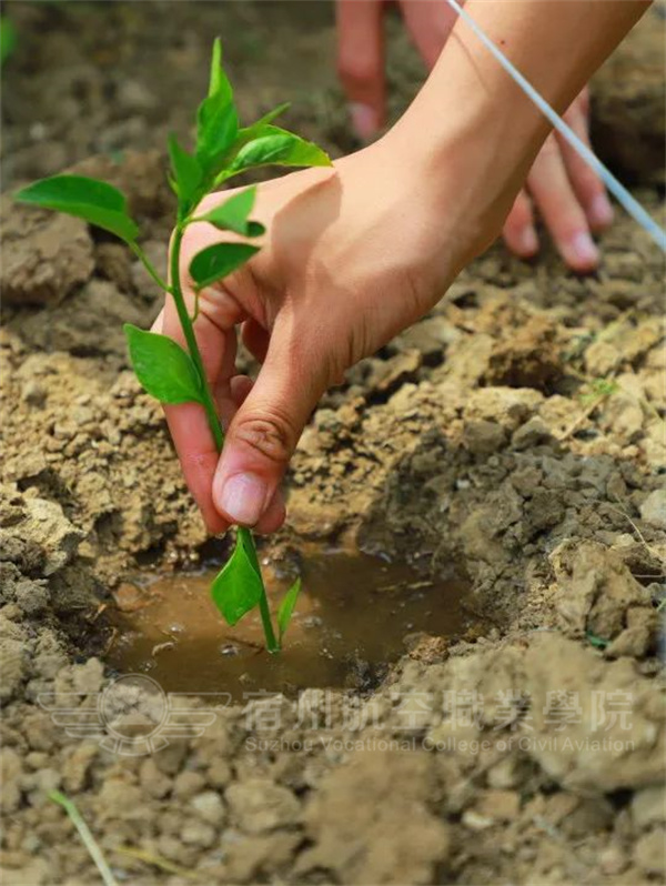 弯腰埋头栽种📽、亲手刨坑,宿航学子们乐于实践、勇于探索,不怕苦不怕累,与自己的劳动成果合影。