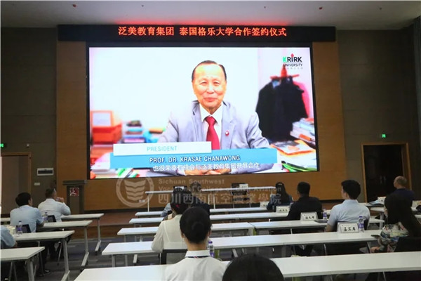 泰王格乐大学校长professor. dr. krasae chanawongse通过视频向全体师生们表达了亲切问候,并介绍了泰国格乐大学留学的情况🫲🏼,欢迎大家到格乐大学留学深造🥷🏽。同时,他表示双方将互相信任♟、共同努力🐷,促进中泰交流更进一步发展,共同建立海外泛美学院合力培养具备国际化视野、专业知识扎实👨🏿‍🎓、职业技能过硬的国际化人才𓀛。