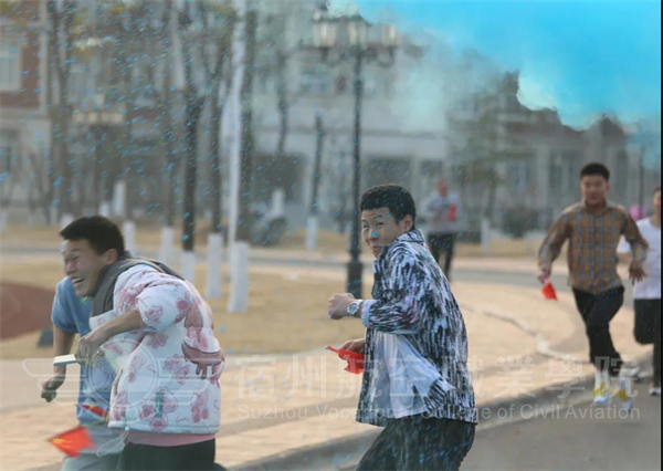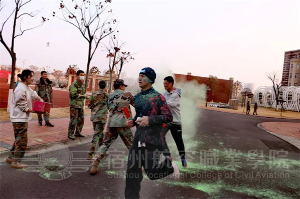 环校跑路线上设有5个彩粉站点,在奔跑者经过每个站点时,站点工作人员,向小伙伴抛撒代表祝福的各色玉米淀粉.