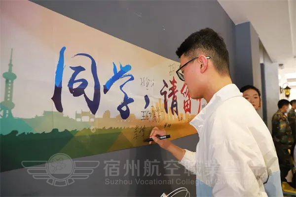 自踏梦幻门的那一刻起,同学们的蓝天梦就已在这里启航。TA们纷纷在开学签名墙上留言签字,纪念这个意义非凡且令人难忘的“研学第一天”。