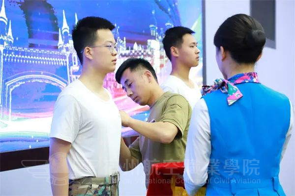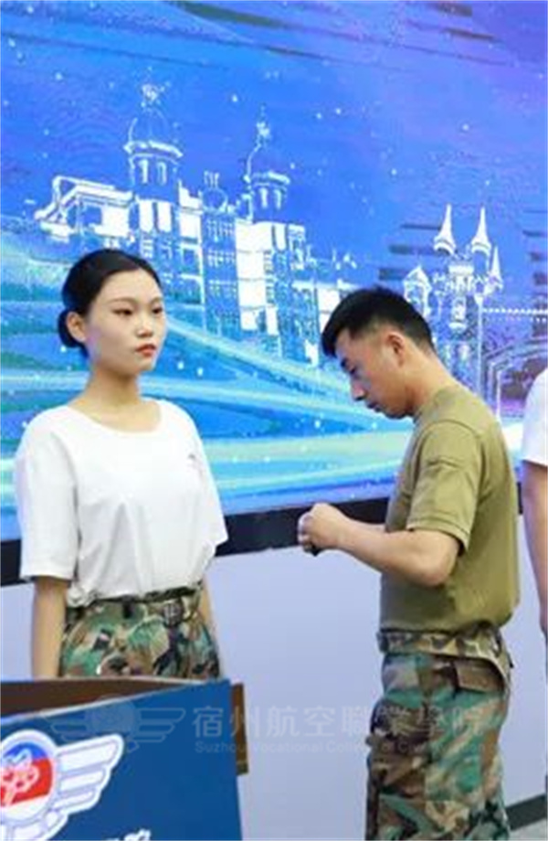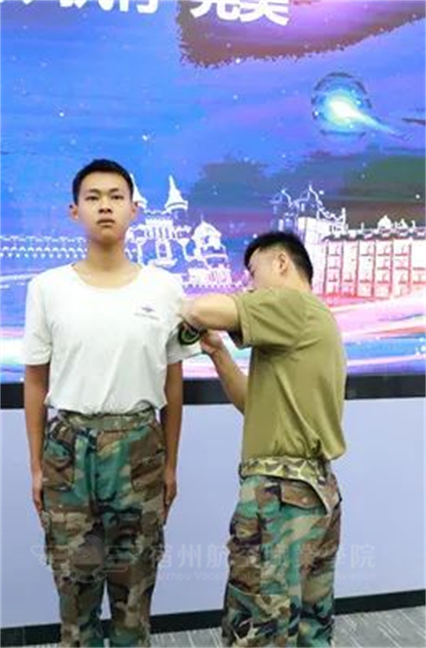 宿航院军体教官关振东任命王旭、孙密密、赵家福3名同学担任此次活动实习教官并授予臂章。