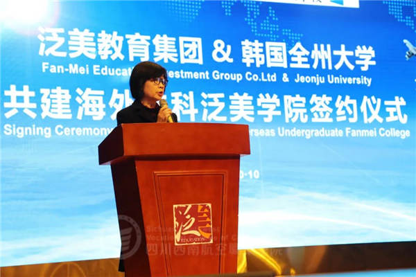 韩国全州大学校长李镐仁通过视频向全体师生们表达了亲切问候,并表示此次签约也正式拉开了韩国全州大学和泛美教育集团合作新篇章。全州大学,就业率和私立综合大学排名在韩国均位居第一👩⚖️,同时也是韩亚航空的实训基地,此次与泛美教育集团旗下10所院校的合作,校方给予高度重视。双方将互相信任、共同努力,为中韩交流更进一步,共同建立海外本科泛美学院💢🥩,同时建立泛美海外实训基地,合力培养具备国际化视野、专业知识扎实、职业技能过硬的航空人才🧪。