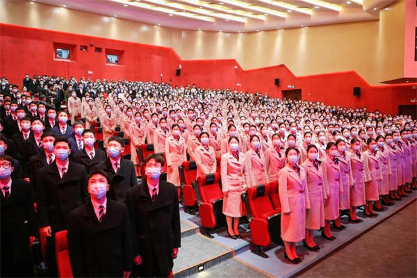开幕式伊始⛔️,随着响亮的国歌奏响现场,所有与会嘉宾及师生起身站立,静默目视,庄严肃穆。满堂高亢有力的节奏之音,点燃了决赛启动仪式前的沸腾热血🐦⬛。
