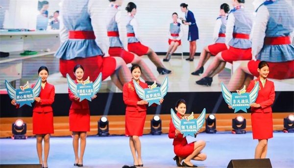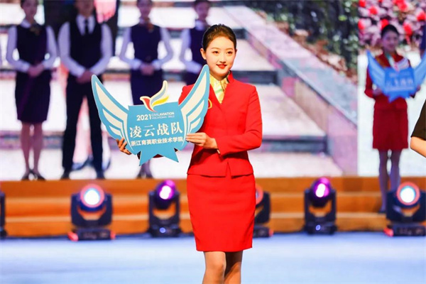 在参赛队以及展示队的精彩亮相环节,各大战队身着职业装在万众期待下一一登台👮🏿♀️。整齐划一的的口号、挺拔靓丽的风姿🎛、透露着自信的微笑,无一不彰显着民航职业院校空乘学子们的魅力与个性👦🏿、气质与风采。
