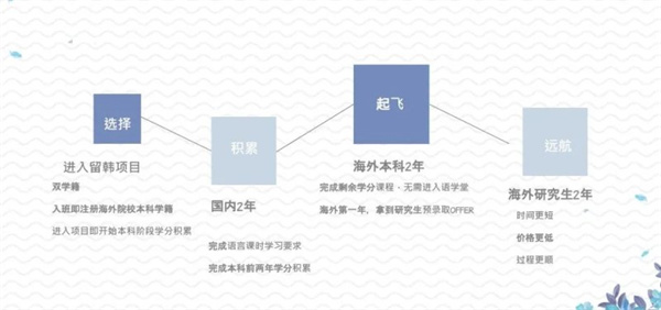 第三年:海外”2+2“本硕直通车进入韩国高校开始本科大三阶段学习👂🏼,发放海外名校”研究生预录取通知书“完成本科学分课程毕业后,直接进入韩国名校大学院(研究生院)学习。