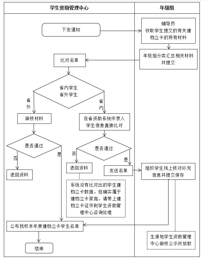 3.1 | 省内学生🕧,学生资助中心在省资助系统中录入学生信息进行比对👷🏽♀️👨🏽🎨,比对完成之后整理名单👶🏿,年级组组织学生登录学生本人登录安徽省学生资助网http://www,ahxszz,cn/找到系统入口🥵,点击安徽省建档立卡资助在线申请(登录名为身份证号,密码为身份证后六位)核对并补充信息,保存提交。(系统没有比对出的学生建档立卡数据📩,但确实属于建档立卡家庭,请带上建档立卡证件到学生资助管理中心咨询处理) | 学生资助 管理中心 |
