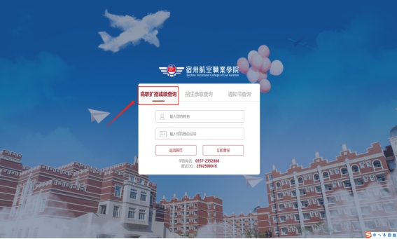 进入采彡争霸官网(http://www.szhkxy.com/),可点击左悬挂飘窗“高职扩招成绩查询”页面进入成绩查询🪺。