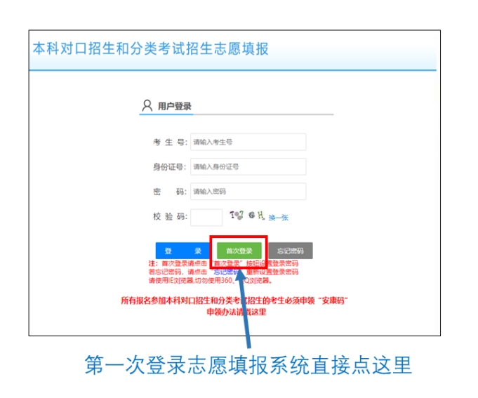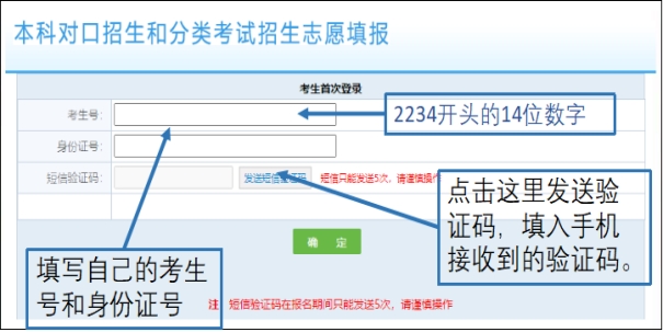 3.首次登陆和志愿提交时均会发送短信验证码,如遇无法接收短信验证码、遗忘考生号等问题,请联系报名点或当地招办。