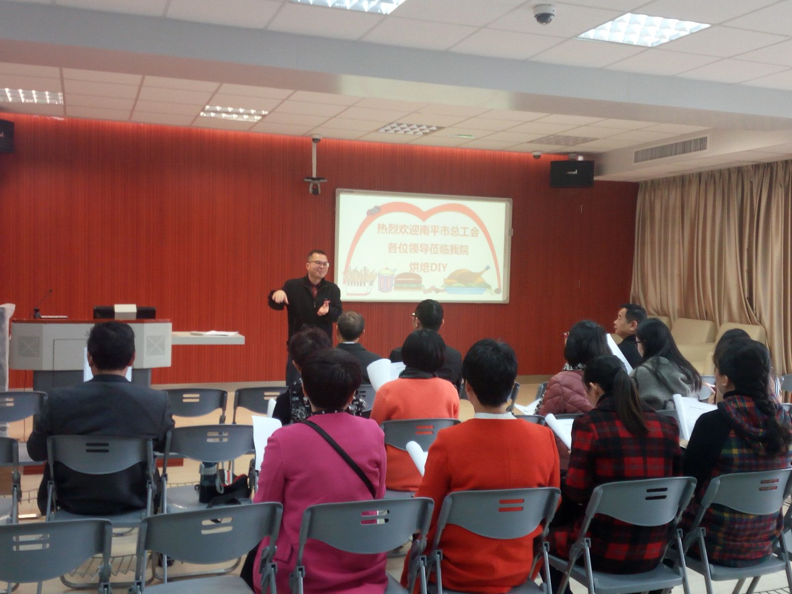 2016年12月2日上午♔,南平市总工会于我系实训楼一楼烘焙食品生产实训工厂开展烘焙DIY活动。在活动中我系老师和学生指导总工会同志进行烘焙食品制作,其间总工会同志亲手制作了“巧克力曲奇饼干”👩🏽🦱、“蔓越莓饼干”和“裱花蛋糕”等产品🤽🏼♂️,让总工会同志体验到自己动手制作的乐趣,共享甜蜜的美味和浓浓的幸福💂。同时展现了我系老师和学生专业技能和热情。活动在愉快的气氛中圆满结束。