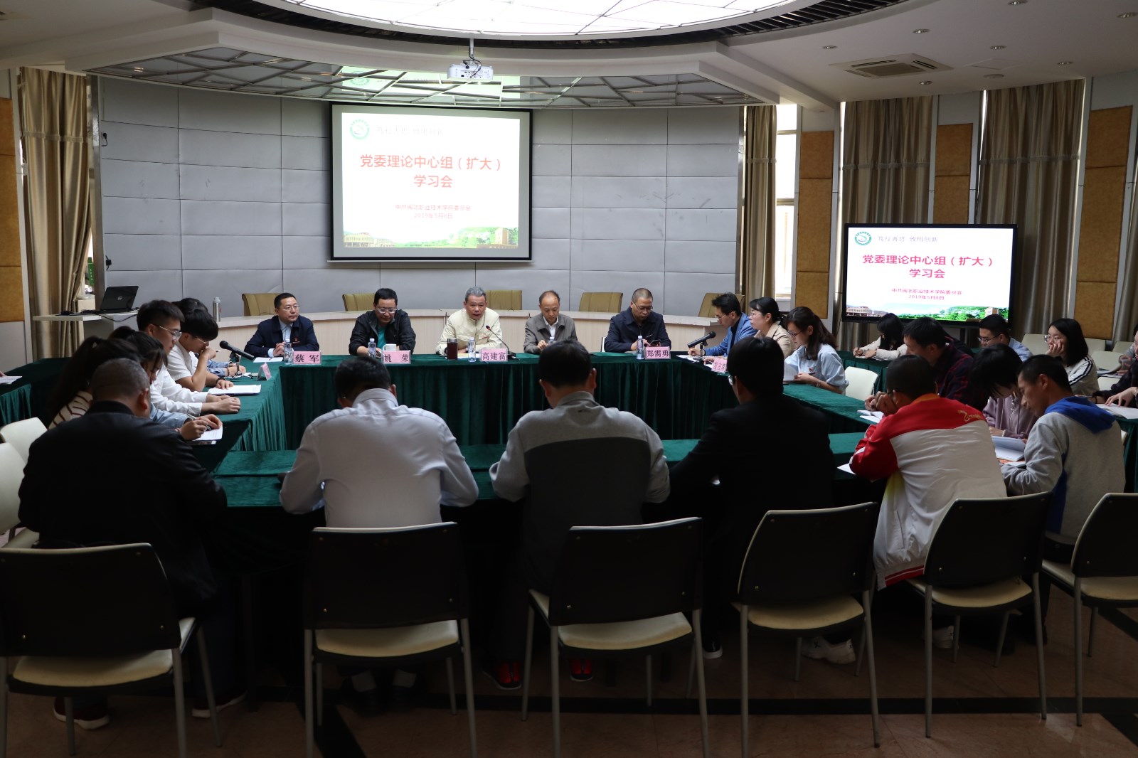 5月8日下午,学院党委召开理论中心组(扩大)学习会暨学习贯彻习近平总书记在纪念五四运动100周年大会上的重要讲话精神座谈会。学院党委领导班子,有关部门负责人,各党总支书记、学生科长、全体辅导员、青年教师代表、学生代表等50余人参加会议。会议由党委书记高建富同志主持。