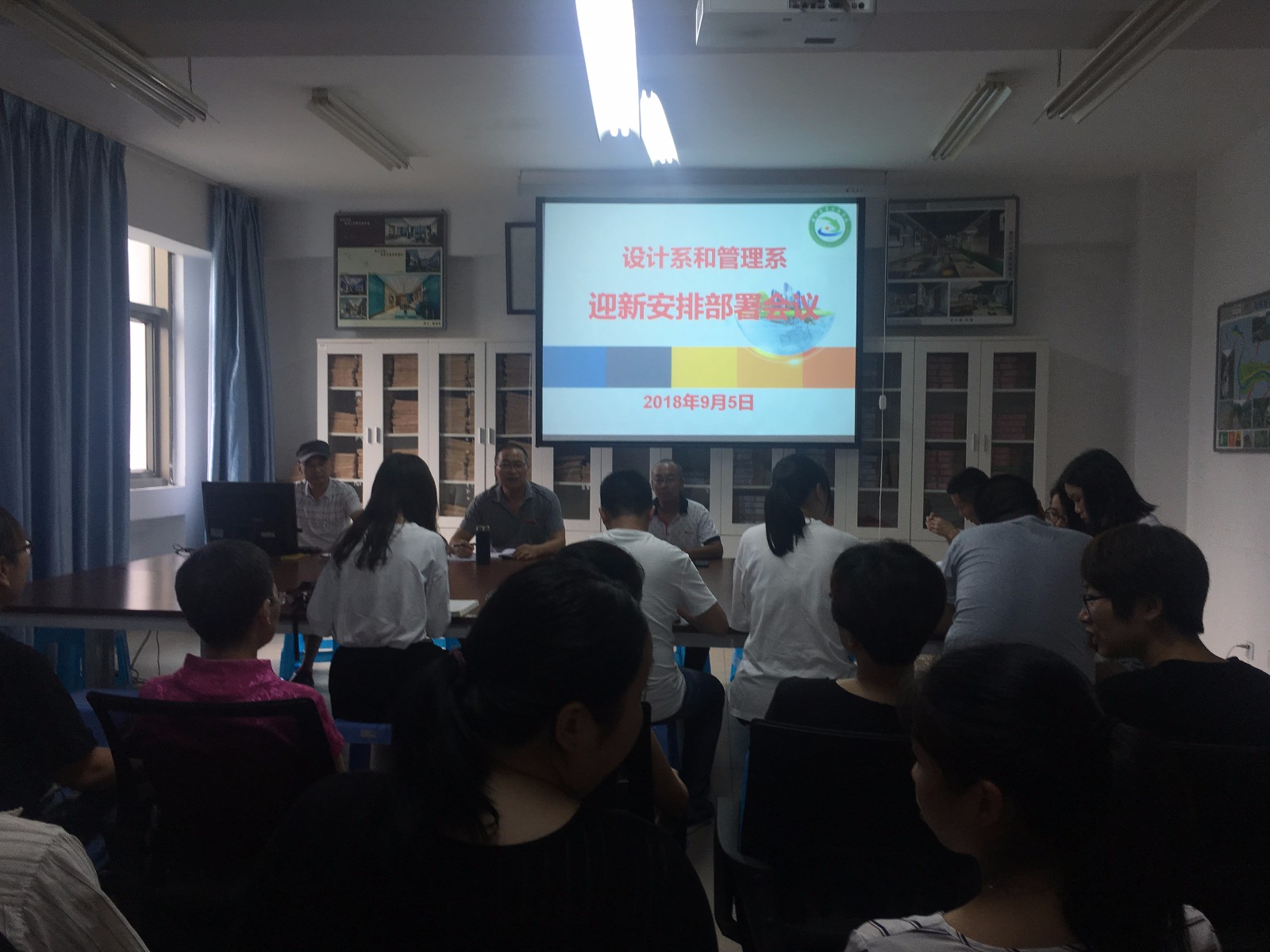 2018年9月5日下午,设计系和管理系召开迎新安排部署专题会议,全系教职工参加了会议,设计系兼管理系主任郑需勇主持了会议。会上,设计系和管理系联合总支常务副书记敖润富对迎新工作地点、任务、时间和人员安排都做了具体部署。郑需勇要求全系教职工充分认识迎新工作重要性,以良好的面貌、饱满的热情和周到的服务全力做好设计系和管理系2018年迎新工作。