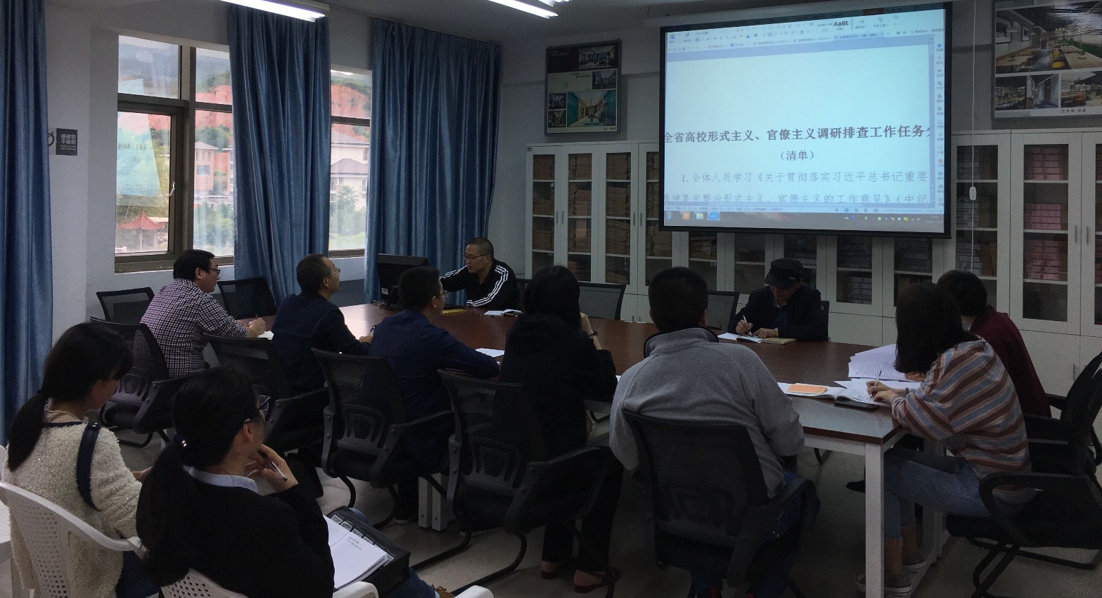 2018年10月23日下午,设计系和管理系召开全系教职工会议传达学习学院落实全省高校集中整治形式主义、官僚主义调研排查工作部署会议精神。