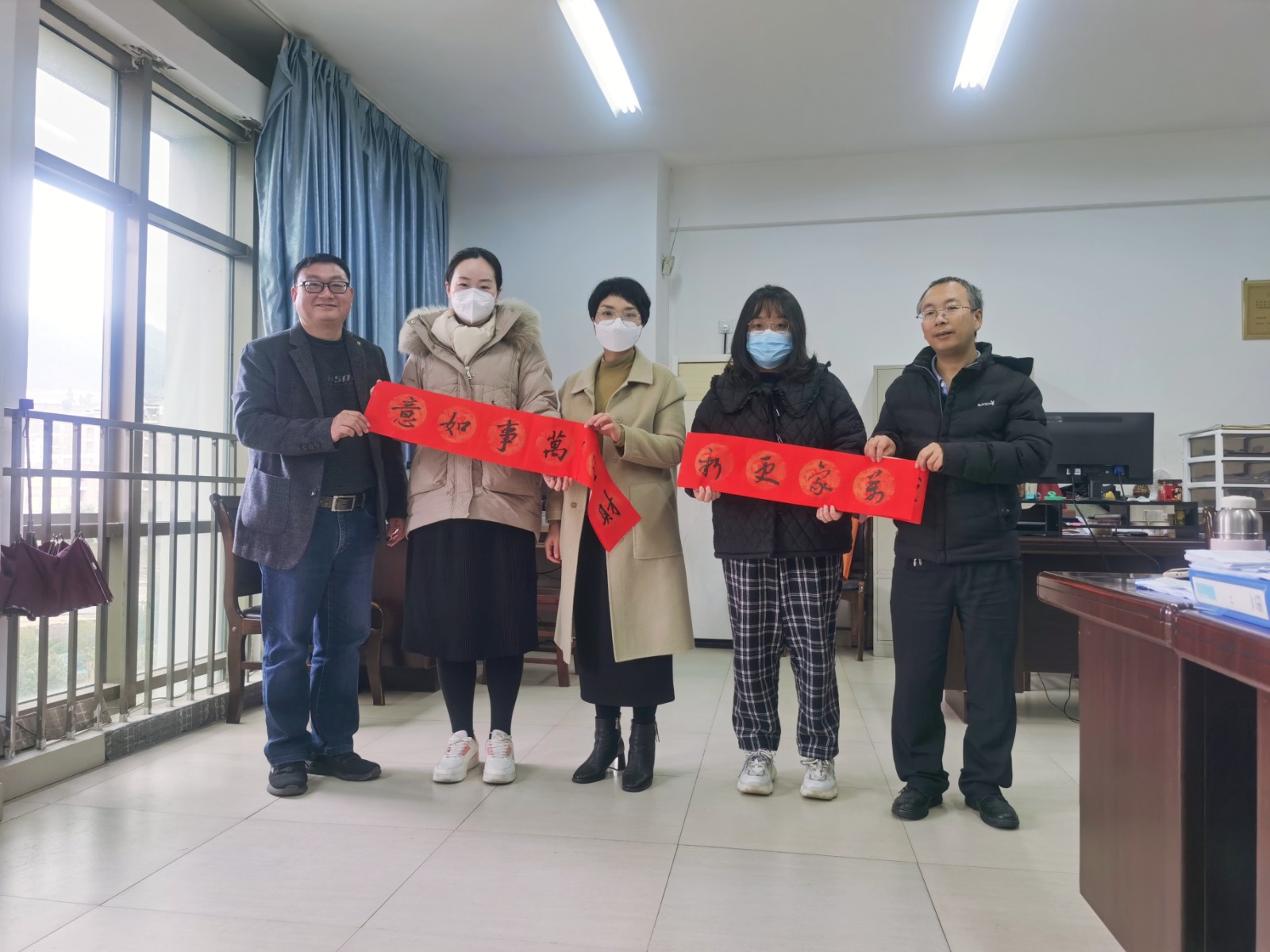 过年写春联是中华优秀的传统民俗文化,象征着吉祥,表达了人民对美好生活的向往。春节将近,为了增加节日的喜庆气氛,设计系和管理系第一党支部开展“墨香辞旧岁 书香送祝福”主题党日活动,为坚守在岗的同事们送上温暖和祝福。把祝福一笔一画融入到书法作品中,红红的春联,浓浓的墨香,提前为春节增添了喜庆气氛,让大家在墨香中感受渐行渐近的浓浓年味。春联虽小,但情意浓浓。收到春联的同事们纷纷称赞道“手写的春联更亲切,更有年味。”