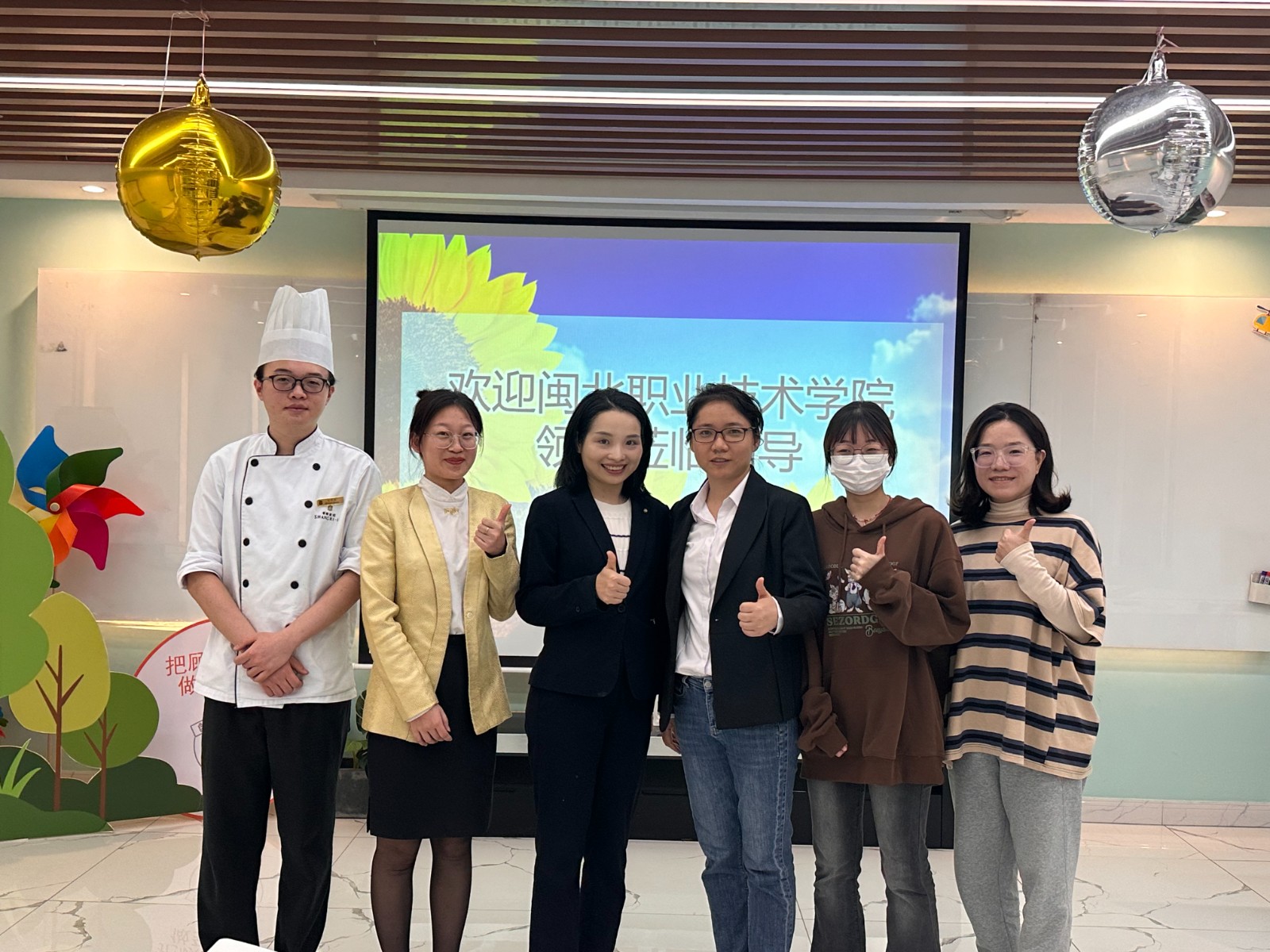 庄梅华、黄丽萍来到福州香格里拉酒店,企业人事经理胡枥珑陪同参观了酒店工作环境,员工宿舍、员工食堂,并与实习生张明桂等3位同学面对面交流。张明桂等3位同学畅谈了实习收获及成长,庄梅华非常关心地询问学生实习中存在的困难并给予鼓励,胡枥珑分享了职业成长经验。
