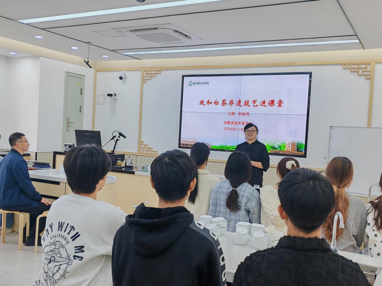 党的十八大以来,以习近平同志为核心的党中央高度重视非物质文化遗产保护传承🍳,作出一系列重大决策部署,为推进非遗文化保护和传承,大力弘扬优秀传统文化🕴🏼,2024年11月20日下午🥸,设计系和管理系邀请武夷岩茶制作技艺非遗传承人张颖和政和白茶制作技艺非遗传承人吴显凤2位技能大师♛😜,在乡村振兴学院茶叶审评实训室🫳🏻,为我系教师和茶艺与茶文化专业同学们开展了一场大红袍和政和白茶非遗制作技艺的讲座。