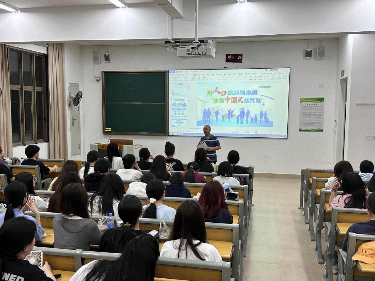 我国长期是世界人口最多的国家,人口问题始终是我国面临的全局性长期性、战略性问题。为了让学生全面认识、正确看待我国人口发展新形势,在2025年4月16日,设计系和管理系联合党总支副书记、副主任(主持工作)白雁飞,以“人口高质量发展支撑中国式现代化”为主题,在3号教学楼201教室为管理系近100为同带来了一堂深刻而富有启发意义的思政课。