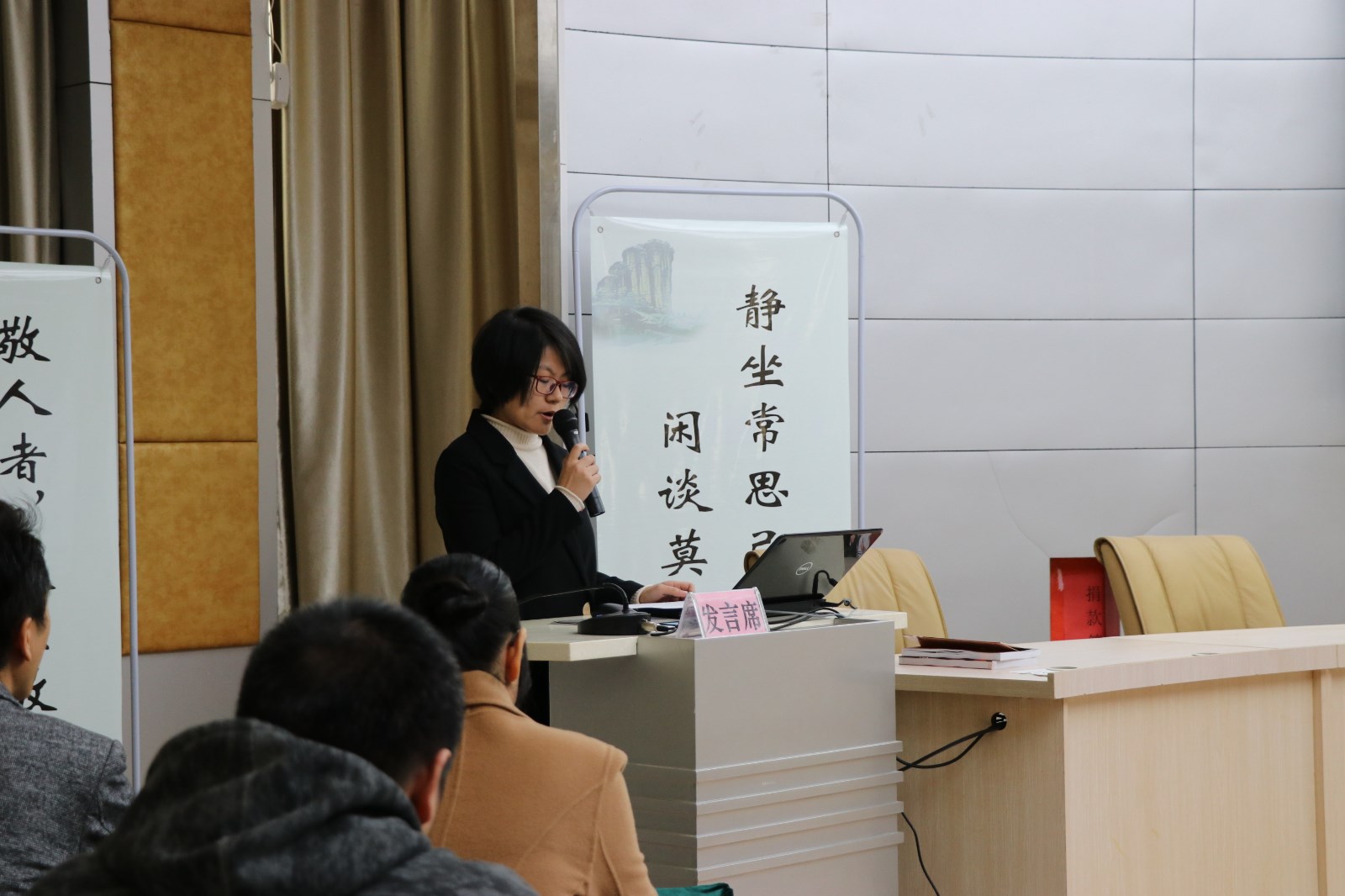 诵一段经典。道德古训,字字珠玑,传承朱子文化,感受先哲圣贤的情怀。主持人王慧老师与参会人员一同齐诵《朱子家训》节选。