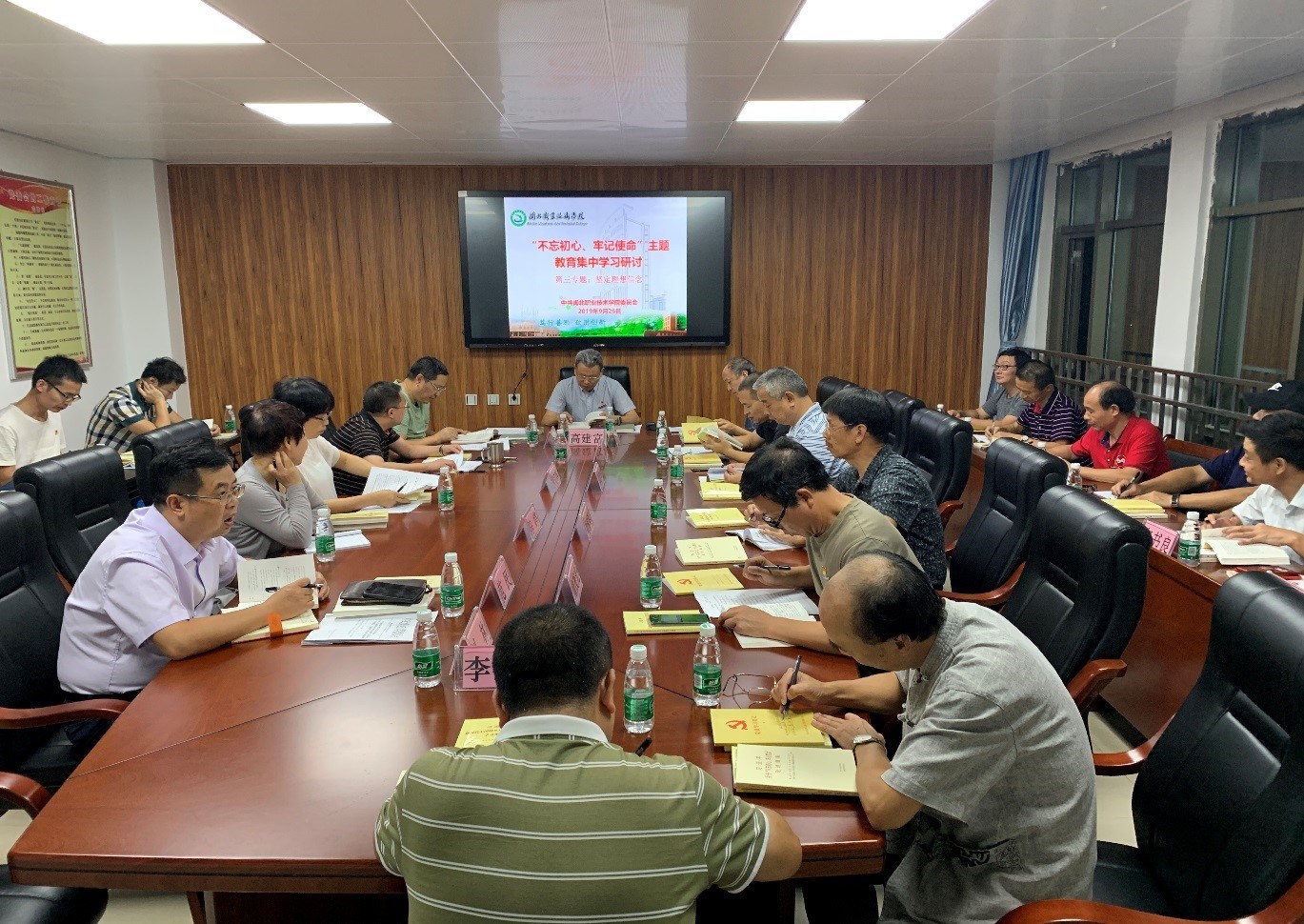 9月26日晚,采彡争霸党委开展主题教育第三专题“坚定理想信念”集中学习研讨,学院党政领导班子成员、二层以上领导干部及教育办全体成员参加学习研讨会议。