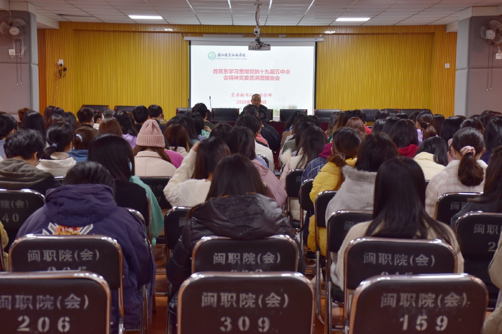 2020年12月4日下午,根据院党委统一部署,院党委副书记陶金辉在18号楼多功能演练厅为教育系广大师生宣讲党的十九届五中全会精神,会议由李清龙同志主持。