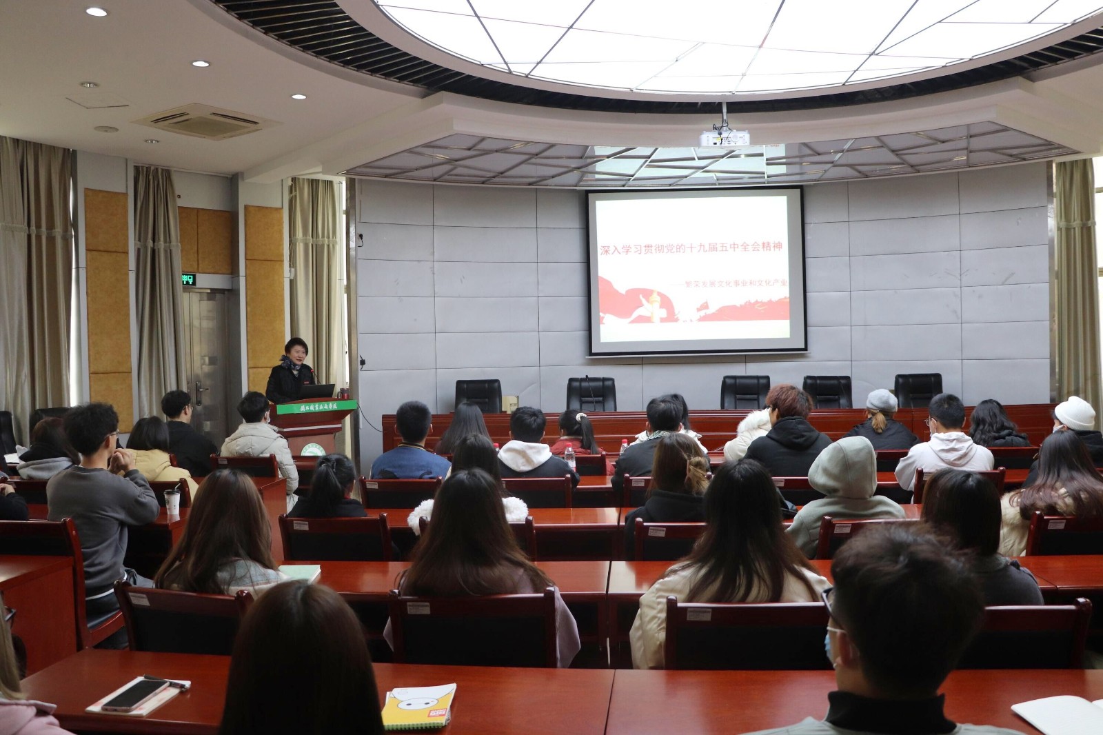 根据学院党委的统一部署,12月18日中午,设计系兼管理系主任陈婷在行政楼一楼报告厅为设计系学生作学习贯彻党的十九届五中全会精神宣讲。