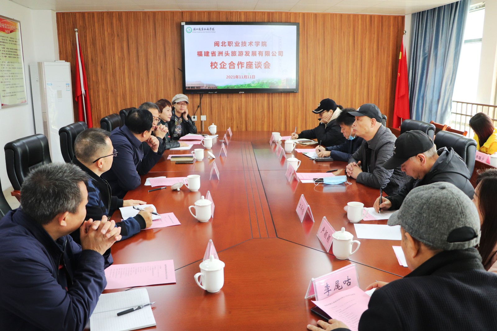 为促进专业建设和产业人才需求精准对接𓀉,11月11日下午,我院与福建省洲头旅游发展有限公司校企合作座谈会在行政楼501会议室召开,学院党委书记谢友平、副院长郑需勇及相关处室系部负责人出席座谈会。
