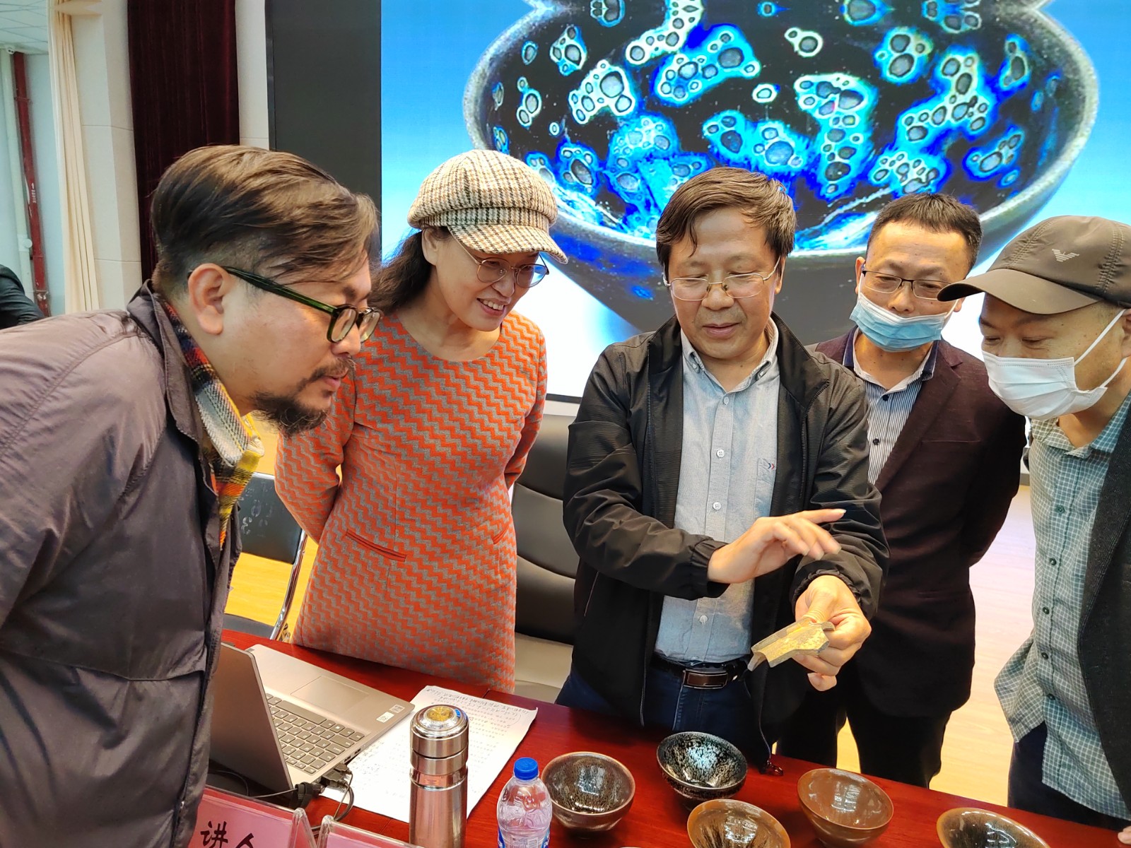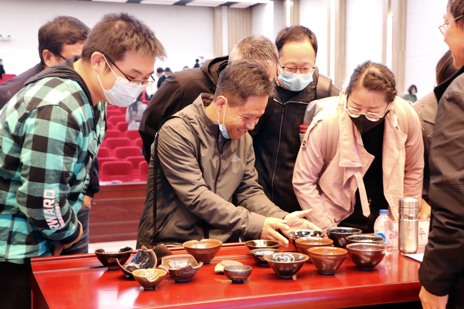 讲座结束后,大家意犹未尽,近距离观赏各类建盏,询问交流,气氛热烈。