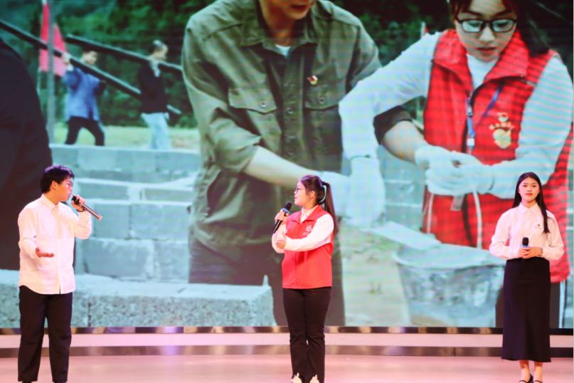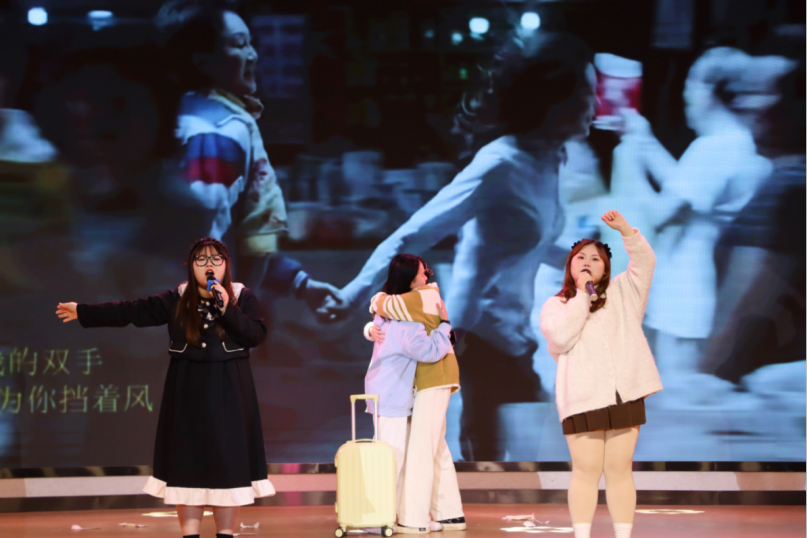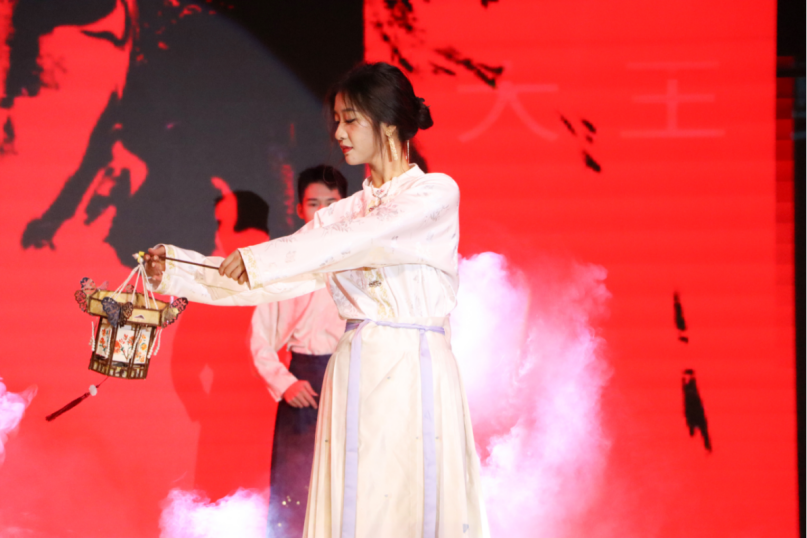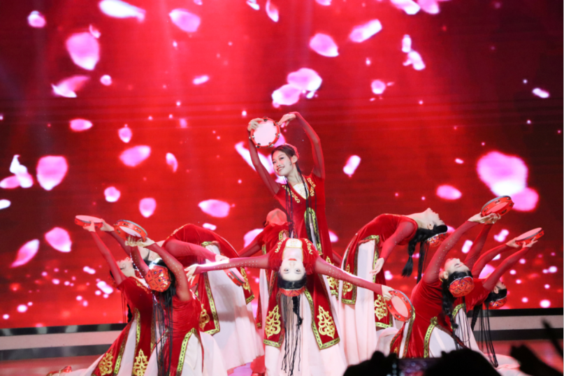 晚会在热情洋溢的啦啦操和战胜鼓表演《红韵》中拉开帷幕。