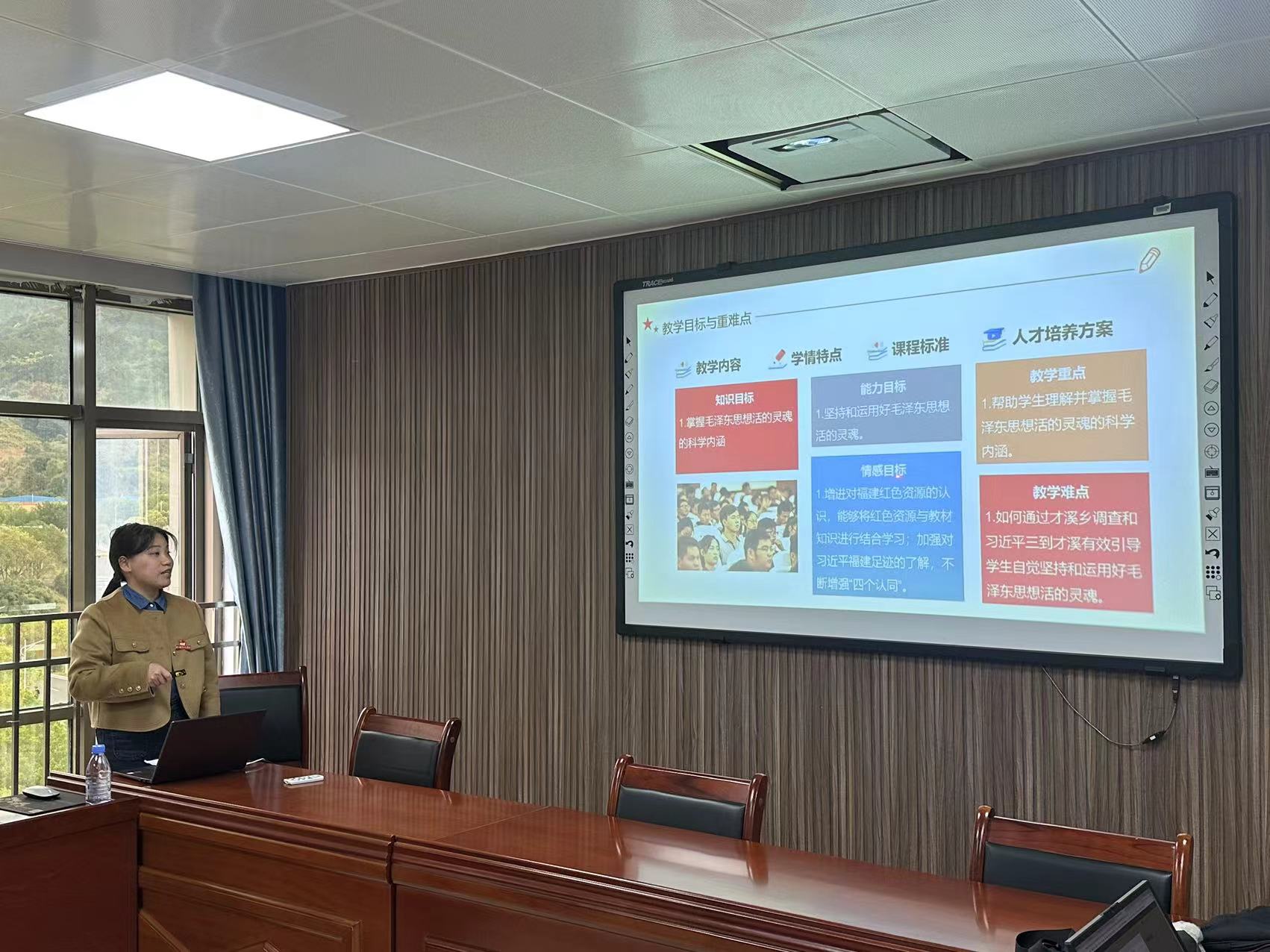 本次交流活动🙆🏽,11位老师分别就选择的课程内容的教学设计、教学内容🩳、教学案例🧧、教学方法进行了说课展示🧚🏼,林文凤老师讲述《从才溪乡看毛泽东思想活的灵魂》,陆强老师讲述了《从电影<第二十条>和“筼筜湖治理”学社会主义法治思维》,吴智鹏老师讲述了《人生观是对人生的总看法》,叶晶老师讲述了《汲取榜样的力量♙,扣好人生的扣子》📠,范芳芳老师讲述了《践悟生态文明建设新思想——以南平“点绿成金”发展模式为例》,解梦雨老师讲述了《社会主义改造》,王星晨老师讲述了《从“海西崛起”看科学发展观在福建的成功实践》🧑🏻,吴芳玉老师讲述了《加快建设教育强国——百年大计 教育为本》🤵🏼,邱晓玲老师讲述了《理想信念的内涵及其重要性》🥷🏽,林碧霞老师讲述了《让人民幸福是“国之大者”》,郭文艳老师讲述了《从留下来到活起来——赓续中华优秀传统文化 铸就社会主义文化新辉煌》🧑🏻🍳,涵盖了《思想道德与法治》《毛泽东思想和中国特色社会主义理论体系概论》《习近平新时代中国特色社会主义思想概论》《形势与政策》四门课程。