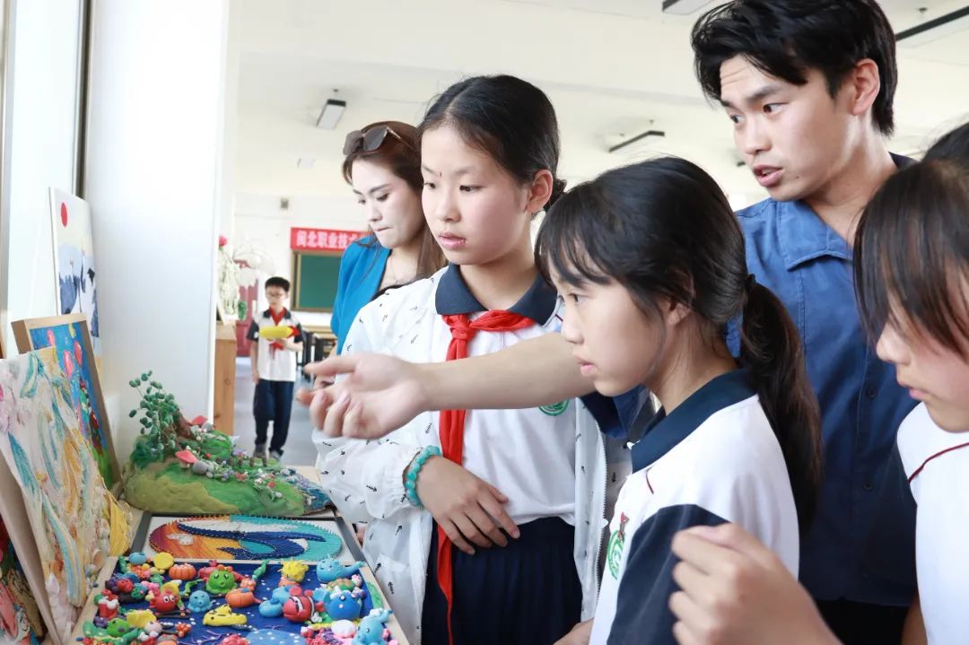 活动现场共设置了烘焙食品和饮品制作、工业机器人展示和体验、端午荷包DIY、茶洋窑制作、手工DIY、融媒体技术展示与体验等6个技能展示区💃🏿。“这个机器人太有意思了”🚛、“姐姐的手真巧,我也想试试”🤽、“原来直播也是有学问的”……前来参观的孩子们不时的驻足🙆、观赏🧞♂️、提问🤟🏽,充满好奇,在体验中感受职业教育的无穷乐趣。