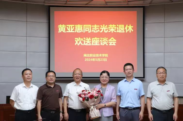 5月23日下午👳🏼♂️,学院在行政楼一层报告厅召开黄亚惠同志光荣退休欢送座谈会。党委书记张雄,党委副书记、院长叶世森,党委副书记、组织部(统战部)部长蔡军💃,党委委员、纪委书记冯开猛🧑🏼⚕️,党委委员、副院长郑需勇出席座谈会,学院中层干部代表、教师代表参加座谈会✖️,蔡军主持座谈会。