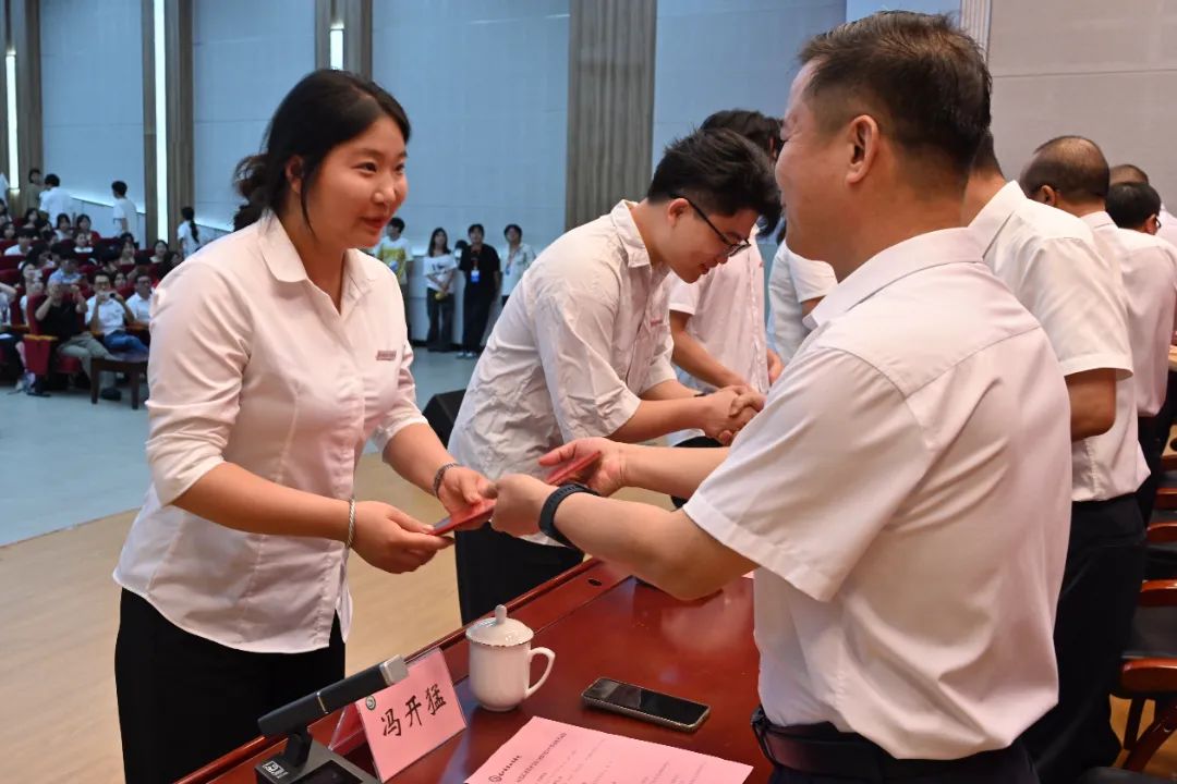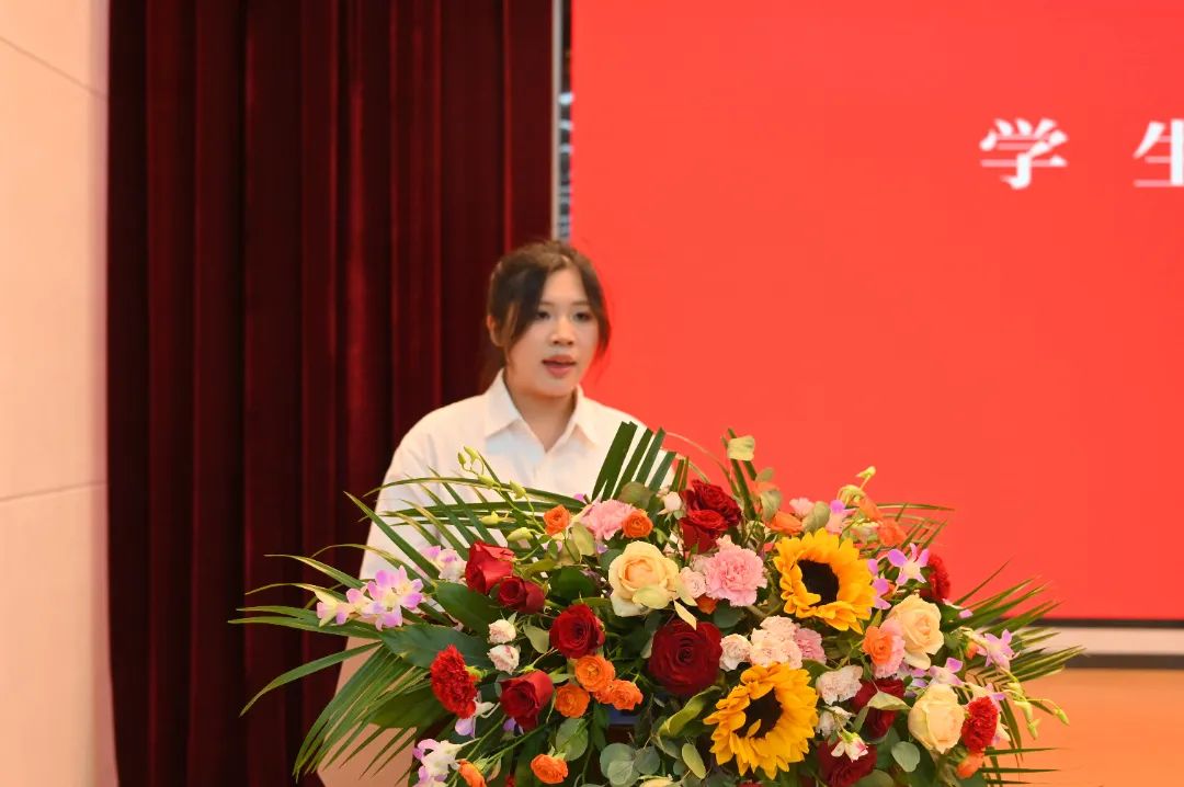 教师代表郑宵回顾了与同学们相处的时光。她感慨道,三年,无论是初入校园的懵懂,还是课堂上的讨论、实验室里的攻坚,又或者是赛场上的拼搏,都见证了大家的成长。临别之际,她寄语同学们秉承“躬耕力行,自强不息,开拓创新”的学院精神,以敢闯敢试的勇气,在新时代创造属于自己的闪耀舞台。