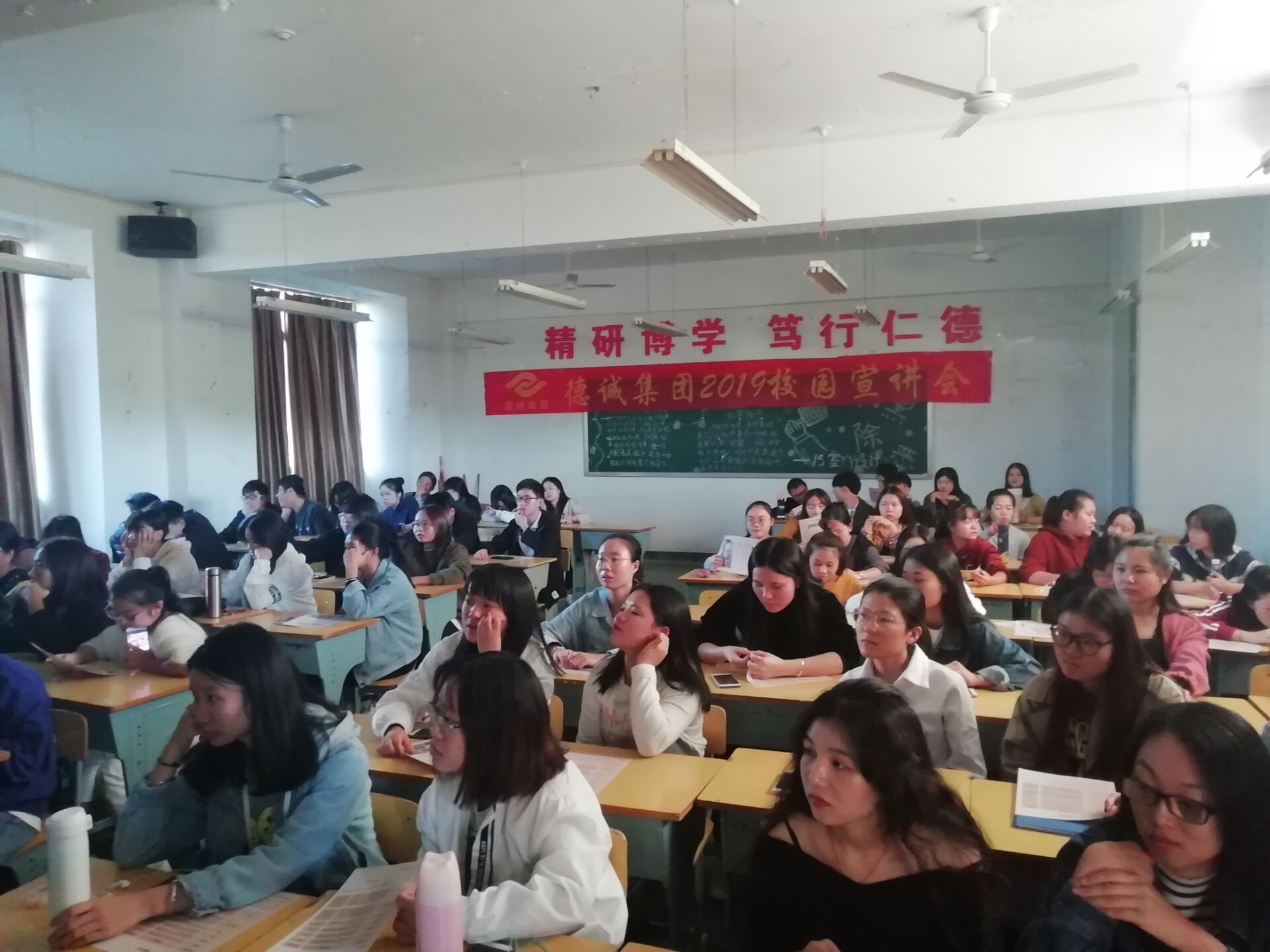 2018年10月29日下午,设计系和管理系在教学楼105教室召开企业专场招聘会,设计系和管理系三年级部分学生100多人参加了招聘会。福州德诚集团到现场开展招聘,提供销售、财务助理、人力资源管理等就业岗位45个。