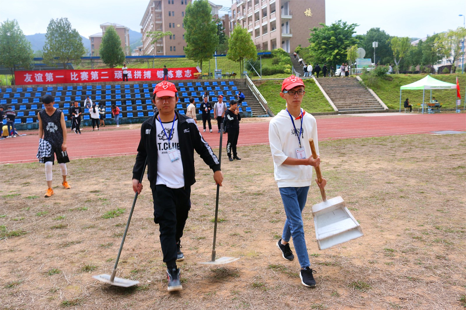 每日早上七点🛗,志愿者同学们已早早到达操场🙋🏿。在比赛期间,为了维护赛场秩序🛷,志愿者们始终坚守在自己的岗位上。时刻关注赛场情况,引导参赛者顺利完成比赛。工作虽然辛苦,但是看到运动员们在赛道上挥洒汗水,赛场井然有序🪅🧑🏽✈️,志愿者们没有过一句怨言🛩,有的是甜甜的微笑🎆,善意的提醒以及他们忙碌的身影👧。