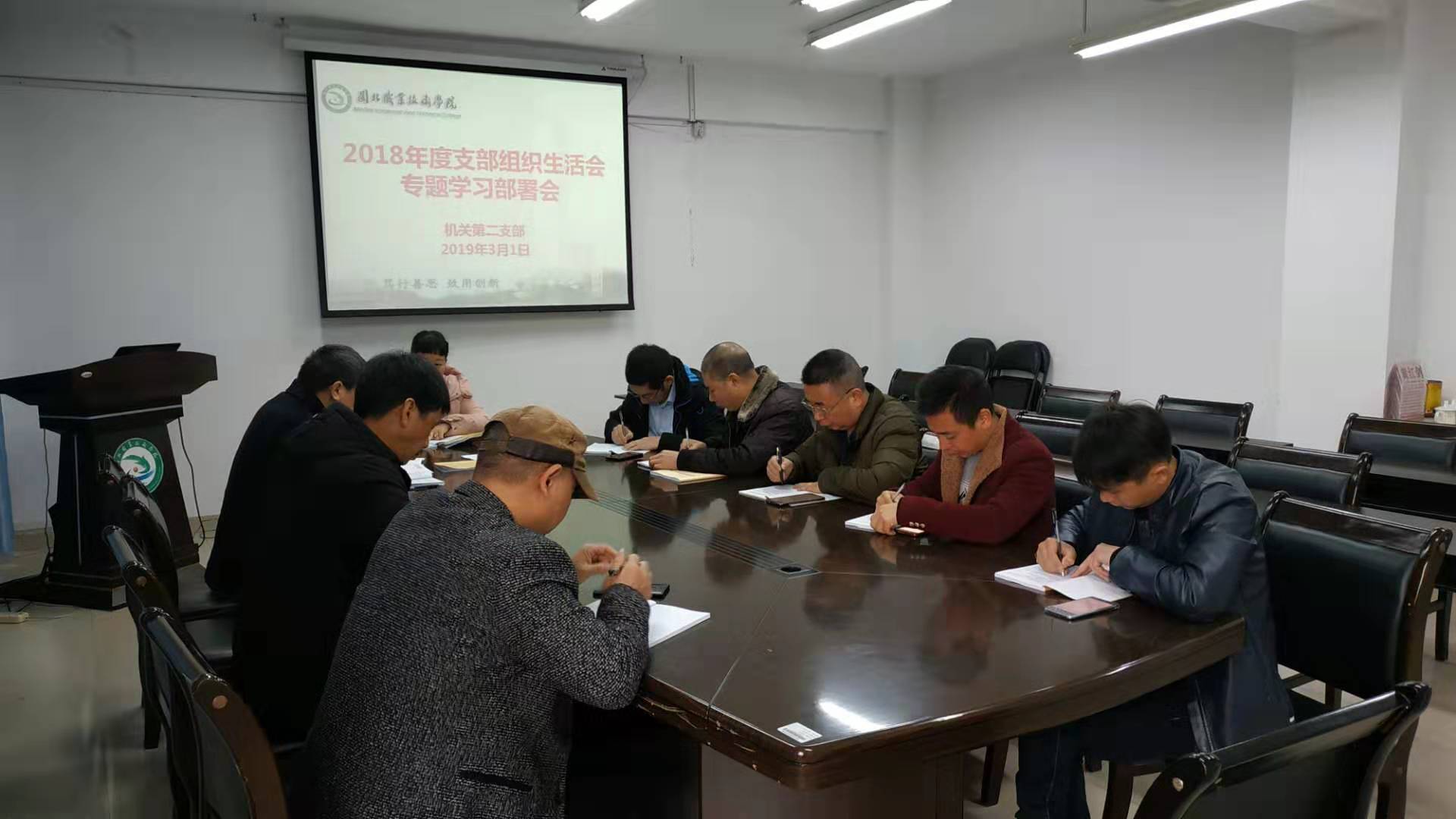 2019年3月1日上午,学院机关第二支部在行政楼五楼会议室召开支部全体党员大会,机关第二支部书记吴兴旺同志主持会议。会上组织学习了习近平总书记在庆祝改革开放40周年大会上重要讲话精神,学习传达了《中共南平市委宣传部关于做好“学习强国”学习平台推广运用工作的通知》、《中共采彡争霸委员会关于召开2018年度基层党组织组织生活会和开展民主评议党员的通知》精神,并对机关第二支部开好2018年度组织生活会和开展民主评议党员前期各项准备工作作安排部署。