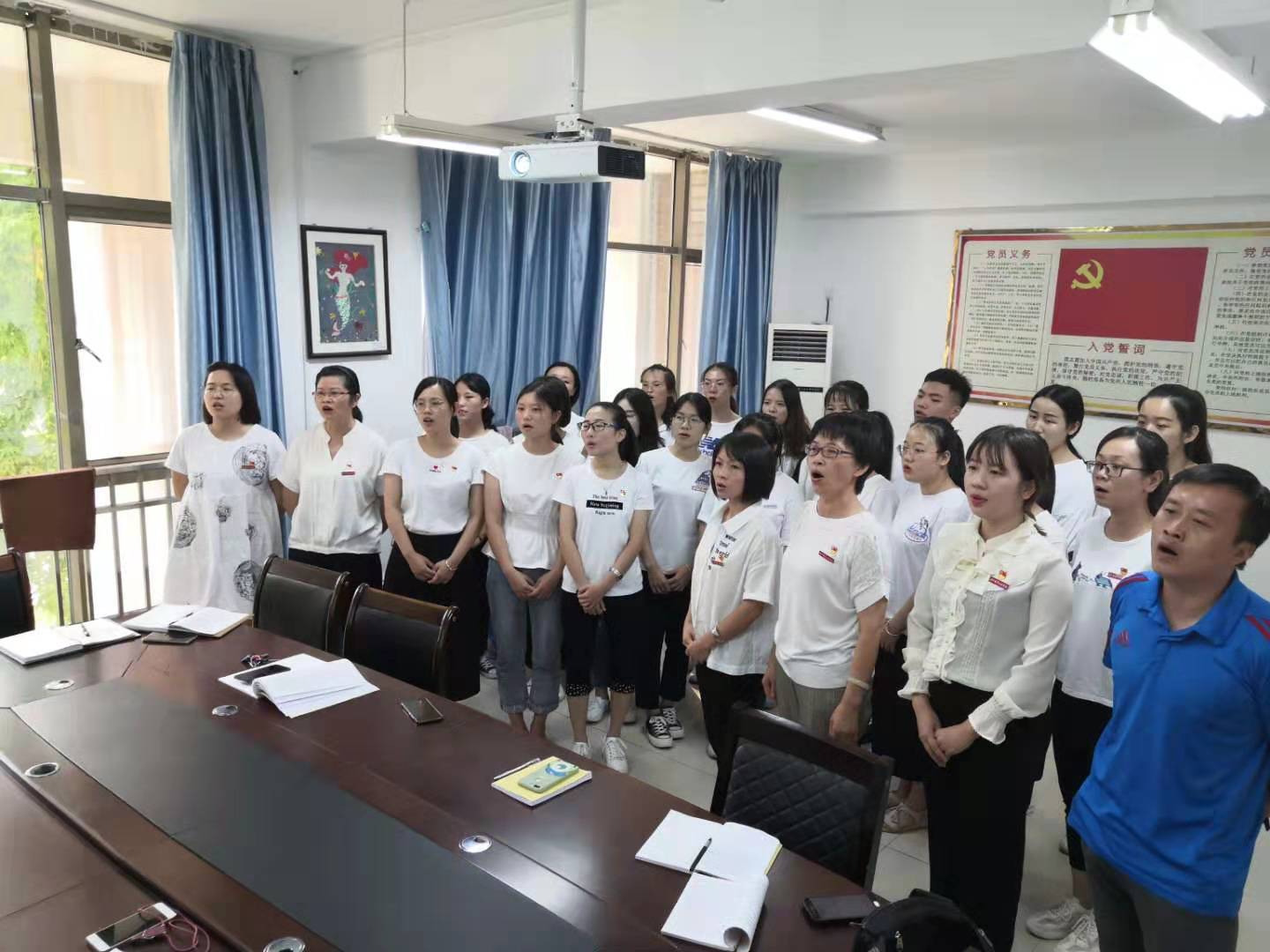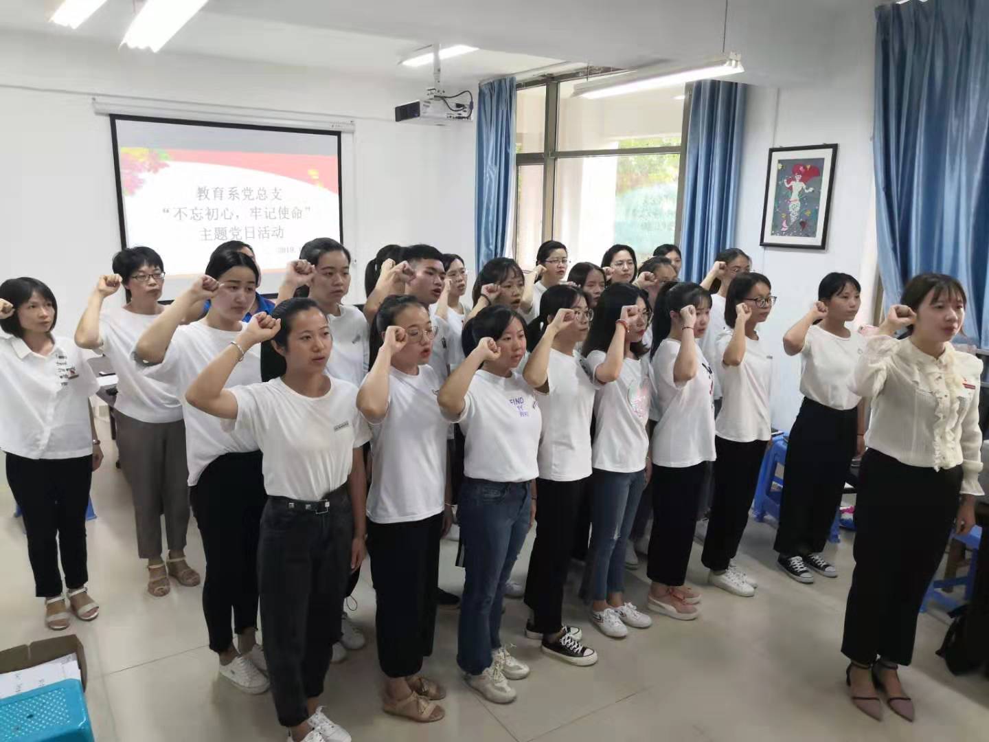 2019年10月12日,教育系党总支组织开展了“不忘初心👳🏻,牢记使命”主题党日活动——重温誓词𓀜,歌唱祖国。