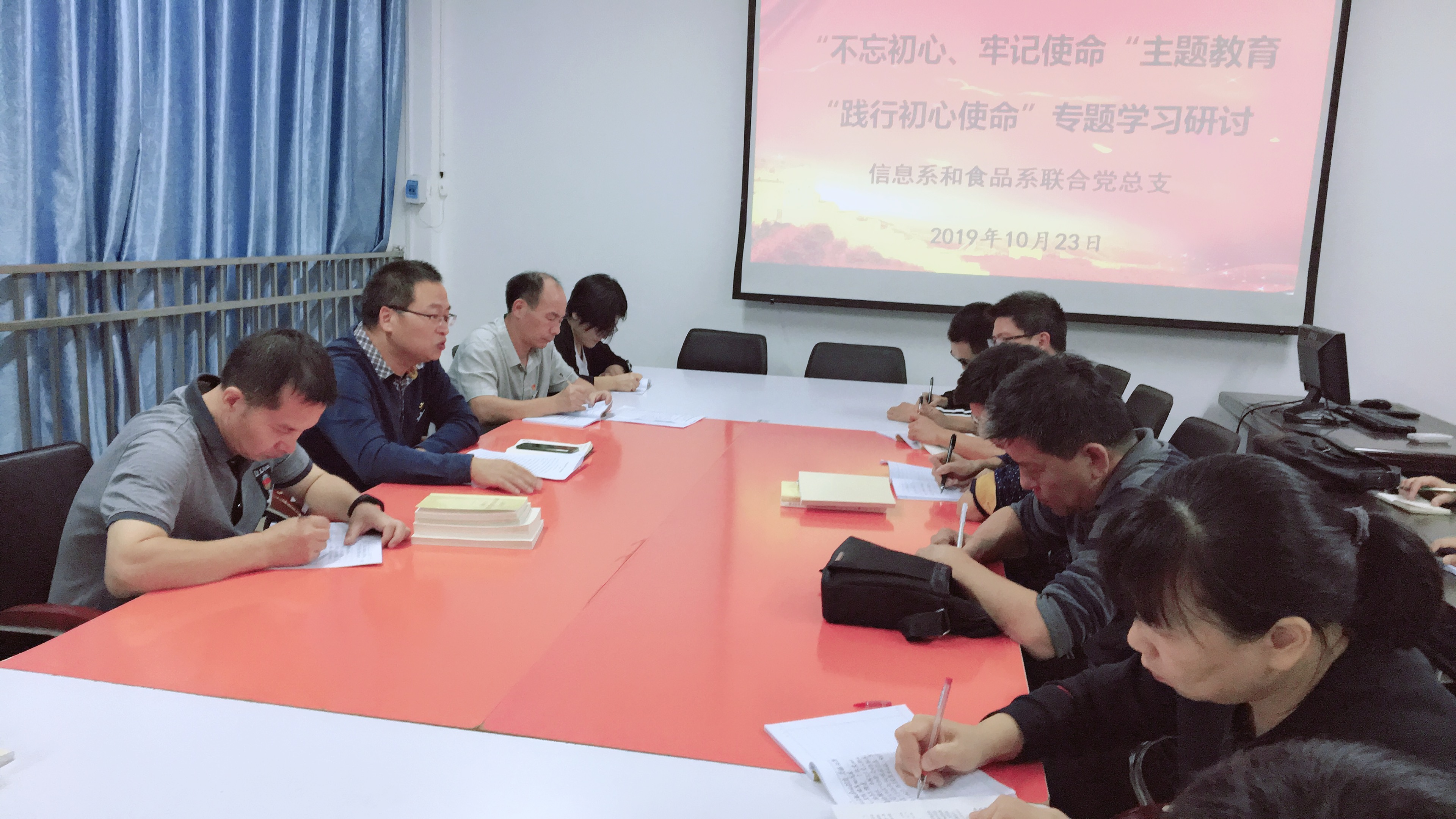 10月23日下午,信息系和食品系联合党总支开展“不忘初心、牢记使命”主题教育“践行初心使命”集中学习研讨,两系全体教职工参加了学习讨论。