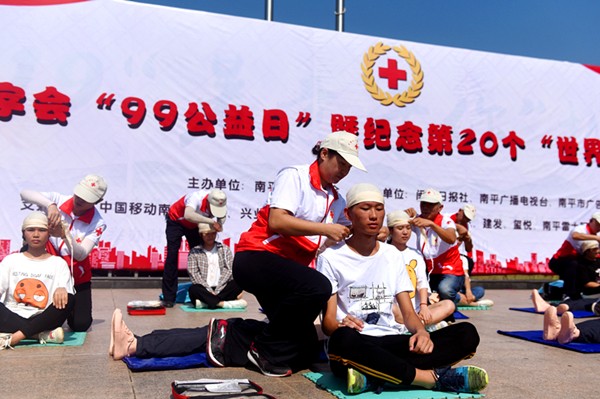 9月9日是“世界急救日”,当天由南平市红十字会等多家单位共同组织的急救日宣传活动在市体育公园内举行。学院20多名“小红烛”青年志愿者公益团队的团员青年们和来自全市各公益社团组织的百余名志愿者齐聚一堂,活动对积极参与全市“爱过年·情暖闽北”公益捐赠活动的社会各界人士进行了集中表彰,并通过现场实操,向社会大众展示了人人掌握急救知识的重要性。