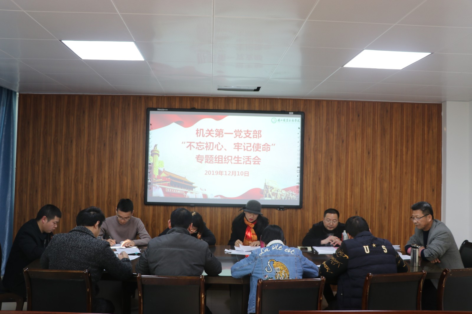 12月10日,机关第一党支部在行政楼507召开“不忘初心、牢记使命”专题组织生活会。挂点领导、党委委员、党工部部长蔡军同志到会指导。