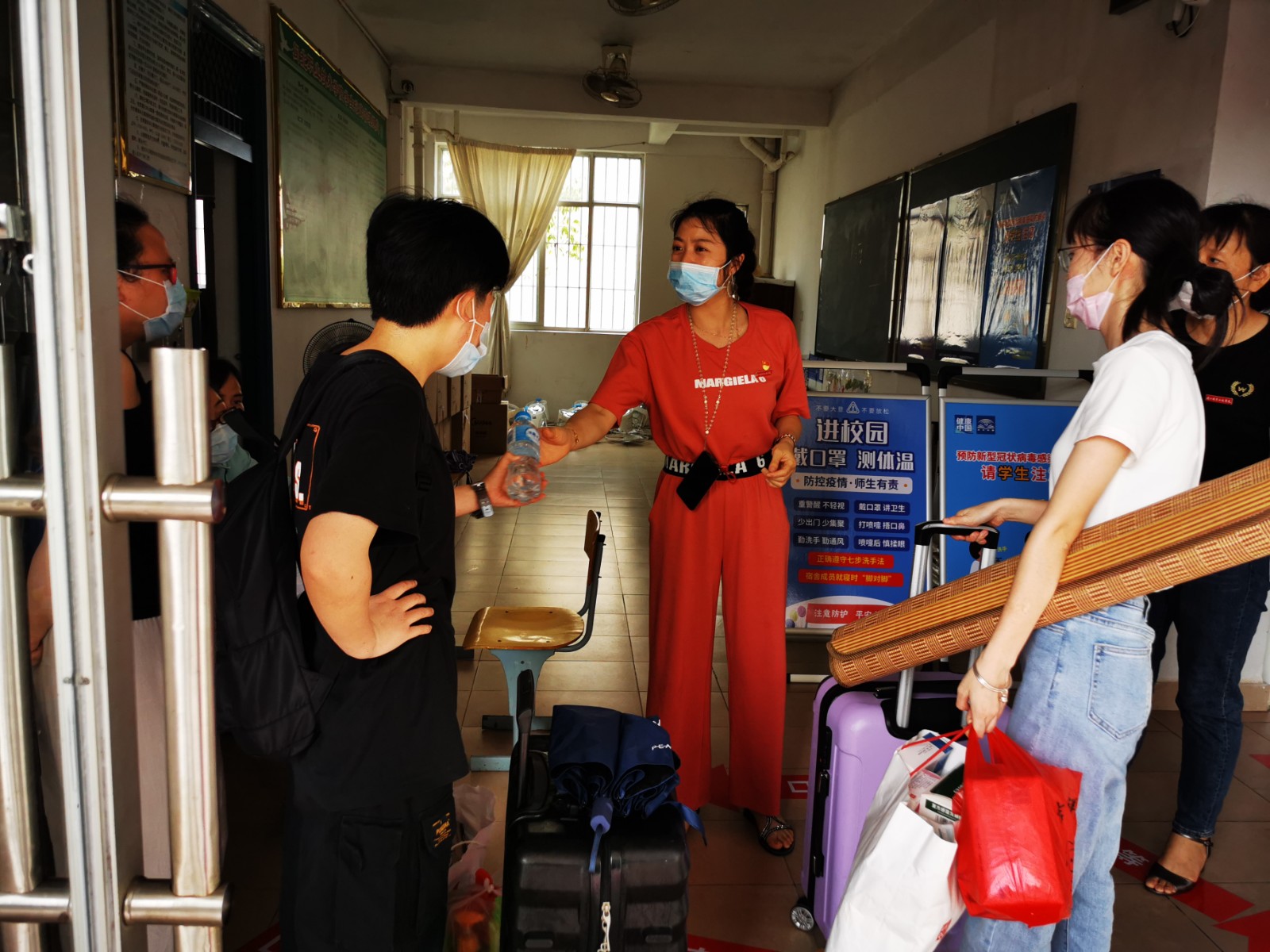 带着笑脸,伴着问候,携着守护,6月2日🤽🏿,信息系食品系迎来第一批返校复学同学,系主任张金良亲自为第一位返校同学及建档立卡困难同学送上爱心礼包。