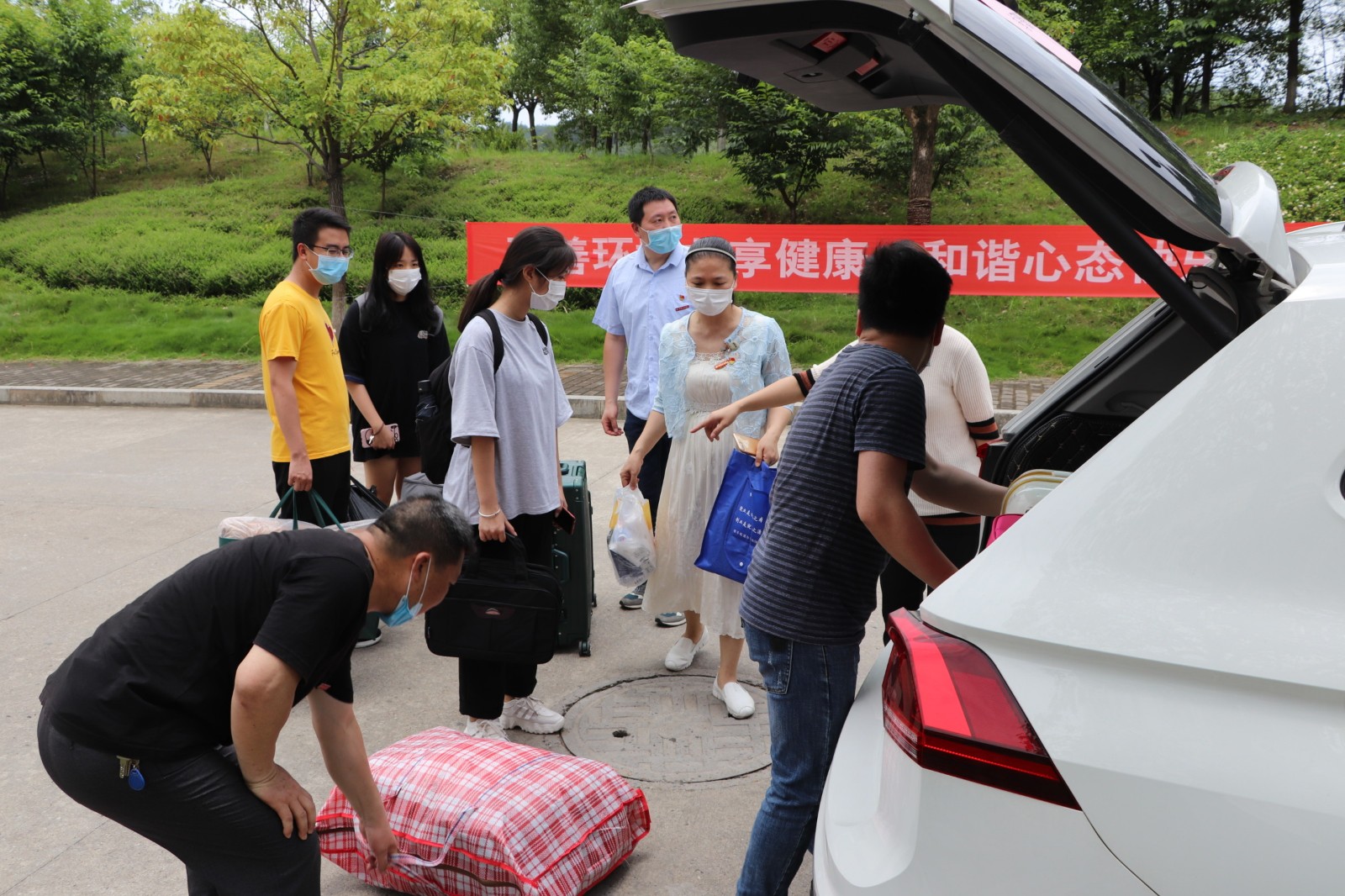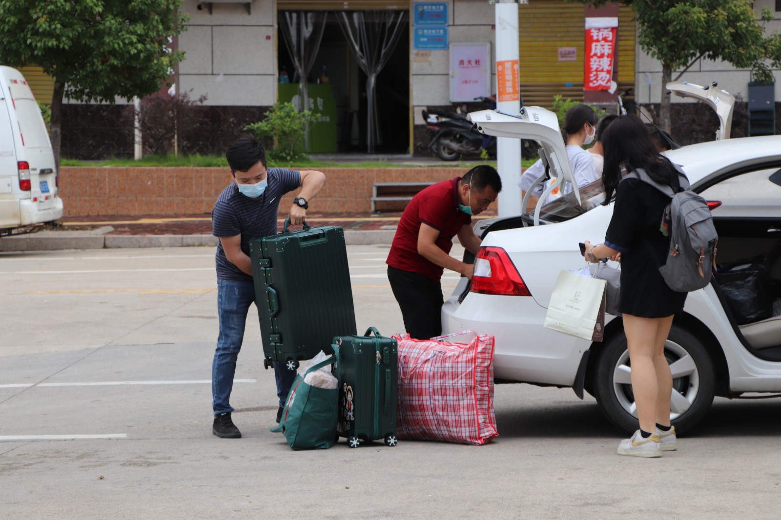 6月2日,是我校首批学生春季返校复学日。为积极响应学院党委号召,全力保障返校复学工作,学院机关党总支号召第一支部和第二支部,迅速组建了返校复学党员志愿服务队。为给返校的莘莘学子提供优质暖心服务,党员志愿者们组建了三个小分队,一队在校门口迎接、引导学生下车,帮助搬送行李到消毒处进行消毒。一队在体温检测门为同学们检测体温和进行防疫宣传。还有一队是爱心接送学生的车队。学校的大巴车,党员志愿者们的私家车,都纷纷加入了接送的队伍。车子有序的停放在校门口一侧的大道上,学生们一进校大门,就有党员志愿者们帮助搬行李,并引导坐上事先开好空调等候着的车子。党员志愿者们上午顶着烈日冒着炎热,下午又淋着暴雨,全天无休,从上午八点服务到晚上十点,为学生装行李,卸行李,搬行李,宣传防疫知识,嘘寒问暖。从校门口到宿舍,返校的同学们感受着学校的关怀爱护,心里充满了温暖和感动!