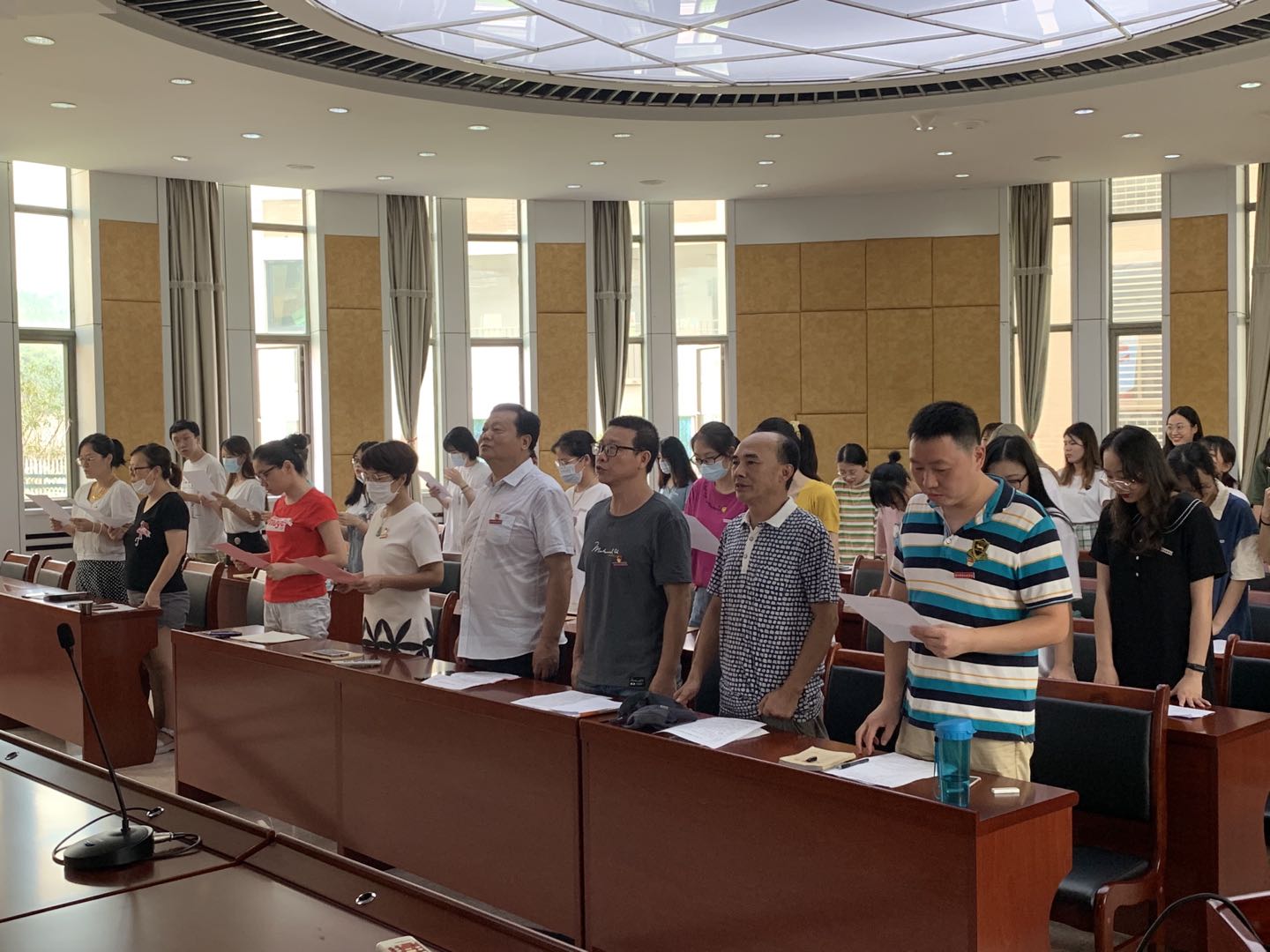 7月1日下午👩‍🚒,一首《没有共产党就没有新中国》嘹亮的歌声在采彡争霸一楼报告厅响起🫳🏼,这是设计系和管理系联合党总支的党员和入党积极分子在举办庆祝建党九十九周年主题党日活动。挂点领导🆎、学院党委谢友平书记以普通党员身份参加了庆祝活动。