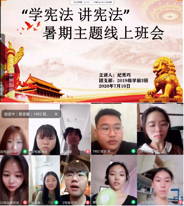 为进一步普及宪法知识、弘扬宪法精神🚚、树立宪法权威,推动宪法教育💇🏻‍♂️,近日学院根据《福建省教育厅办公室关于开展第五届全省学生“学宪法讲宪法”活动的通知》文件精神的要求,积极组织各系各班师生利用暑期线上主题班会的形式,开展大学生“学宪法 讲宪法”线上主题班会。