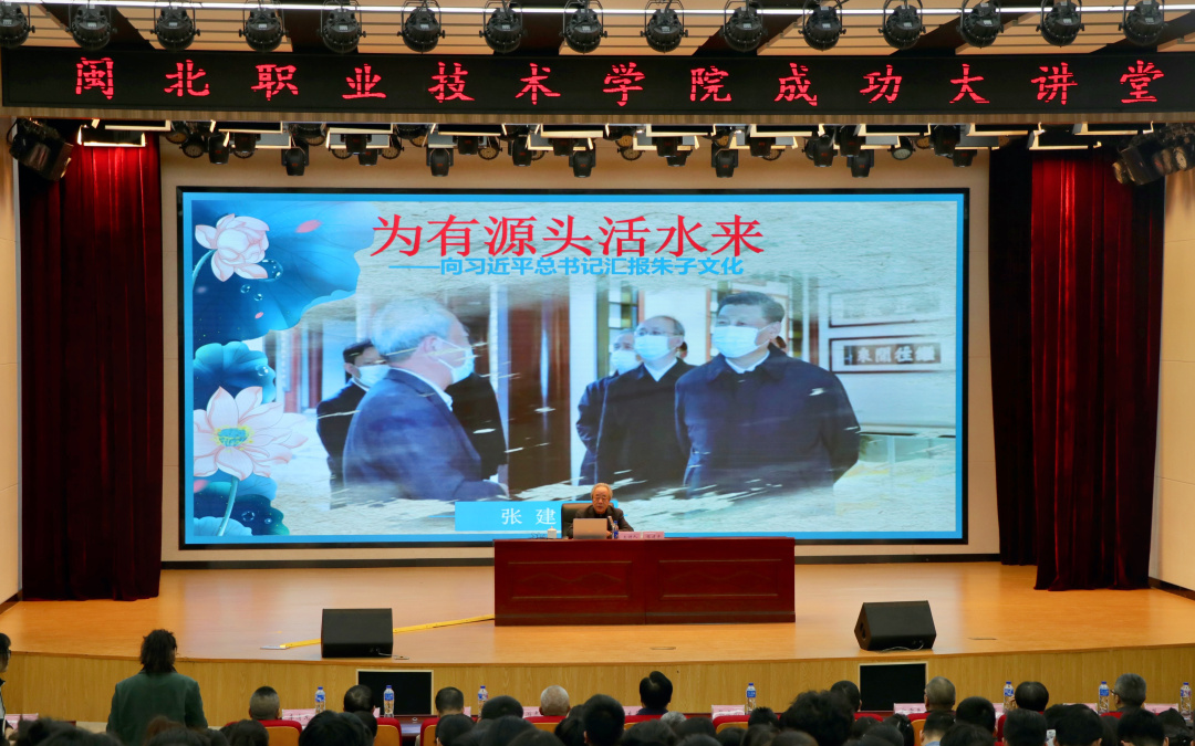 2023年12月13日下午,中国作家协会会员、福建省文史研究馆馆员、中国朱子学会顾问、第四届南平市政协主席张建光莅临我院成功大讲堂,以《为有源头活水来——向习近平总书记汇报朱子文化》为题,作主题教育专题讲座。学院领导、全体教职工、部分学生代表、共建村党员代表等现场聆听了讲座,学院党委书记谢友平主持讲座。