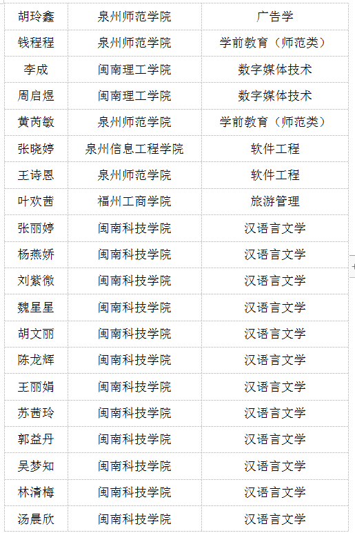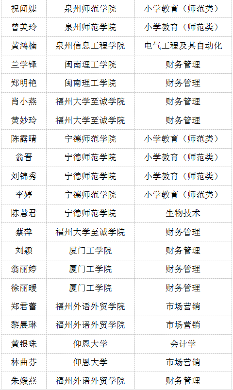 据悉,今年我院共有110名2020届毕业生被福州大学、福建农林大学、集美大学、闽江学院、仰恩大学、泉州师范学院、宁德师范学院、龙岩学院、三明学院、武夷学院等16所本科院校录取,创历史新高!