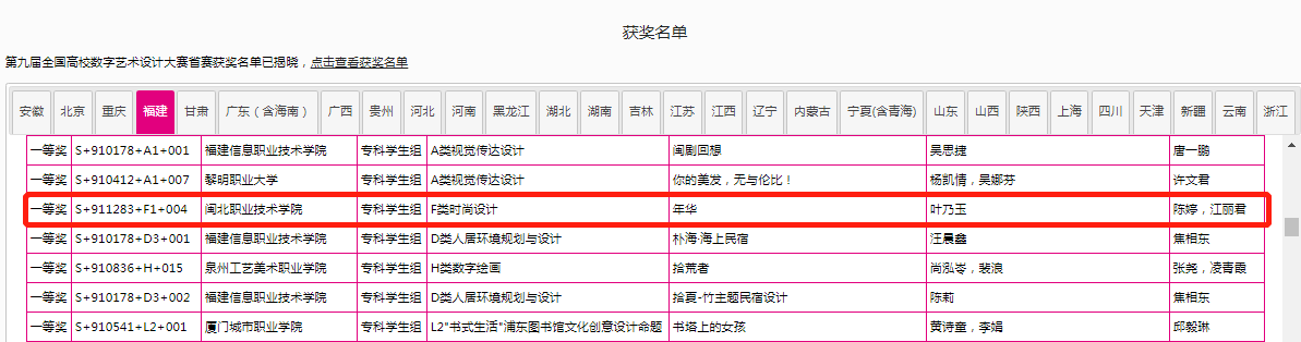 近日,2021第九届全国高校数字艺术设计大赛省赛奖项公布。此次比赛我院服装与服饰设计、建筑室内设计两个专业学生参加了“非命题”类的时尚与服饰、环境空间两个类别赛项,共有18件作品参赛,最终获得了福建省赛区1个一等奖、2个二等奖,5个三等奖的骄人成绩,其中一等奖作品是由陈婷、江丽君两位老师共同指导的18级服装班叶乃玉同学的作品——《年华》,该作品也是本次学生专科组F类时尚设计类唯一一个一等奖作品,《年华》以环保主题为切入点,突出旧物变新衣,重新展示时尚。此次省赛获奖作品将代表福建赛区参加全国总决赛。