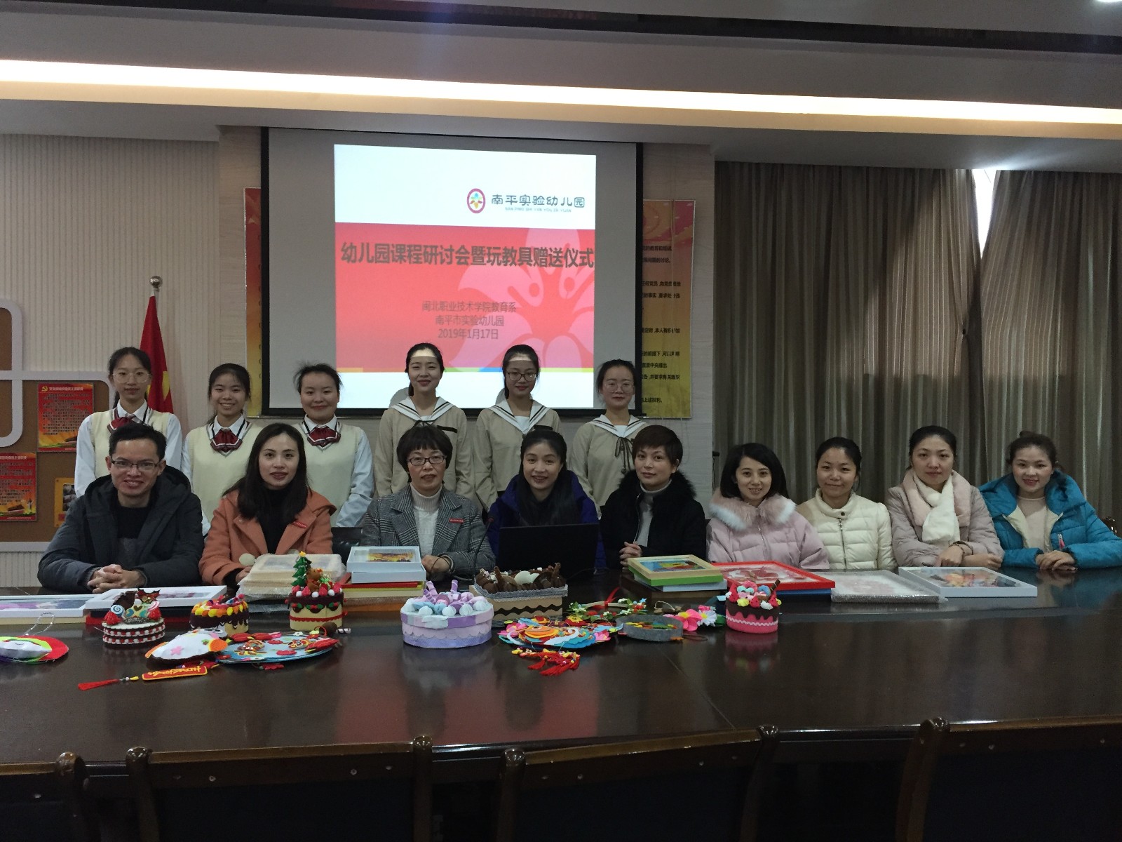 座谈之后,双方进行了“玩教具赠送活动”,见习生代表把见习学生制作的玩教具赠送给了自己见习的班级。